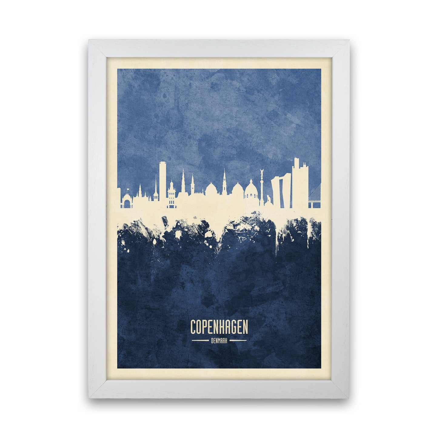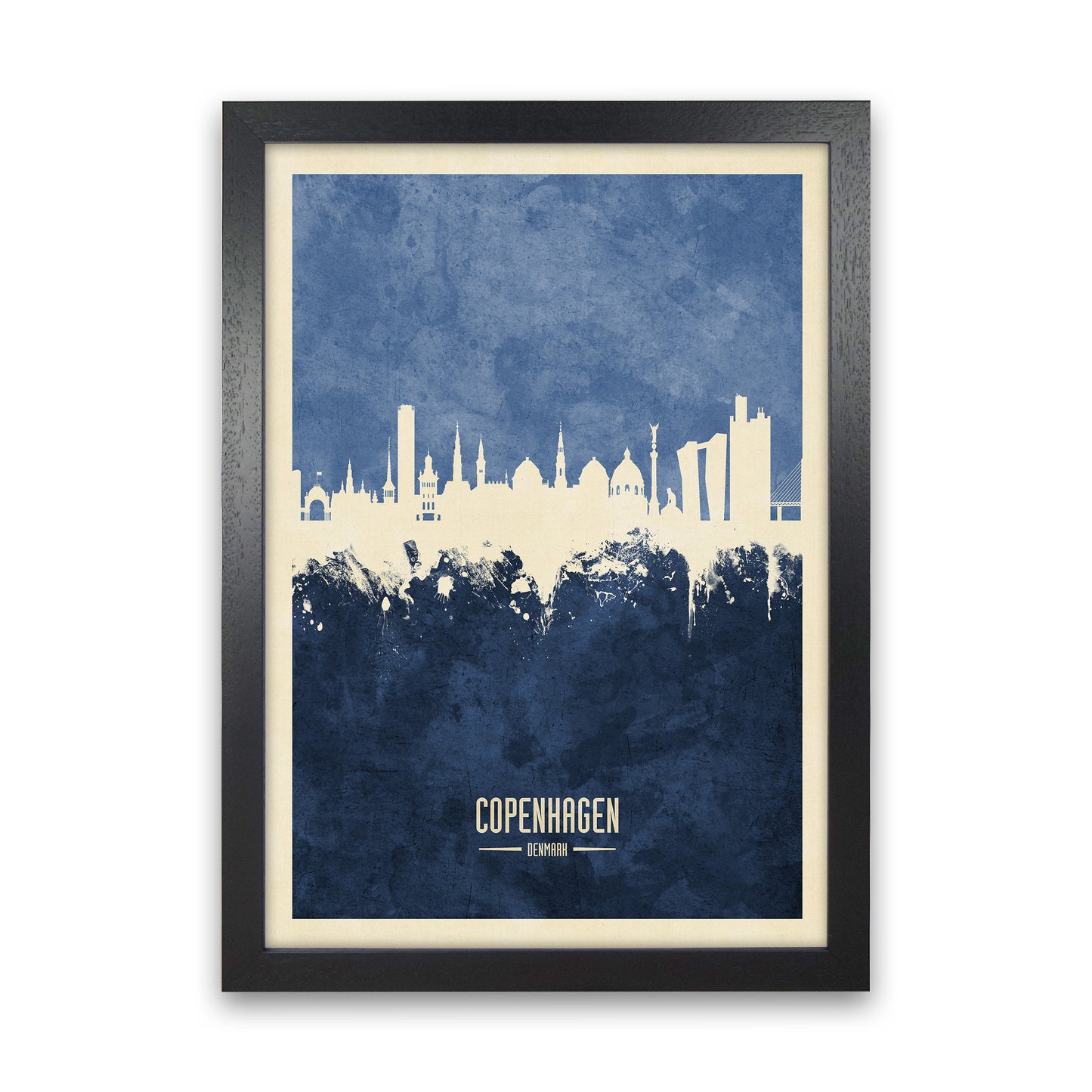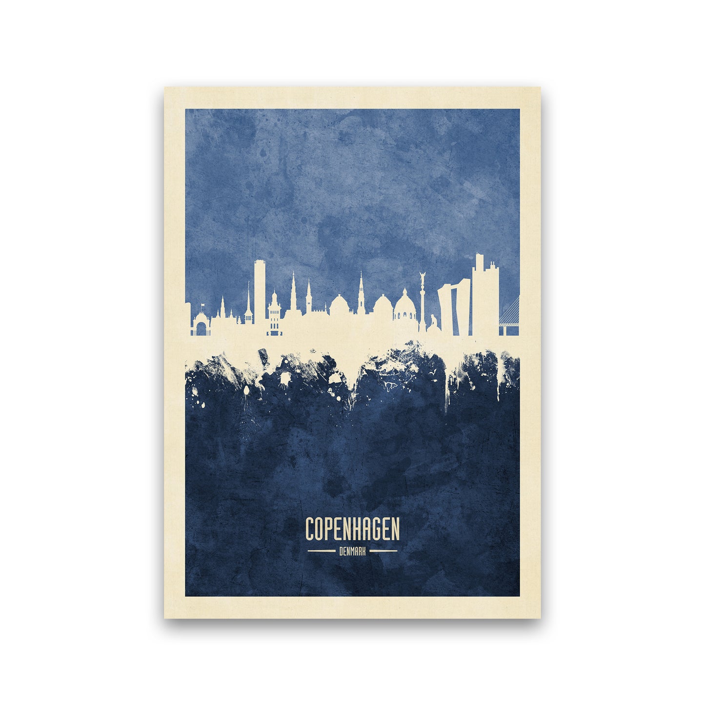 Copenhagen Denmark Skyline Portrait Navy Art Print by Michael Tompsett