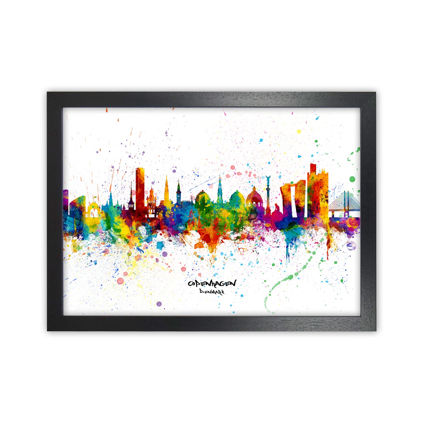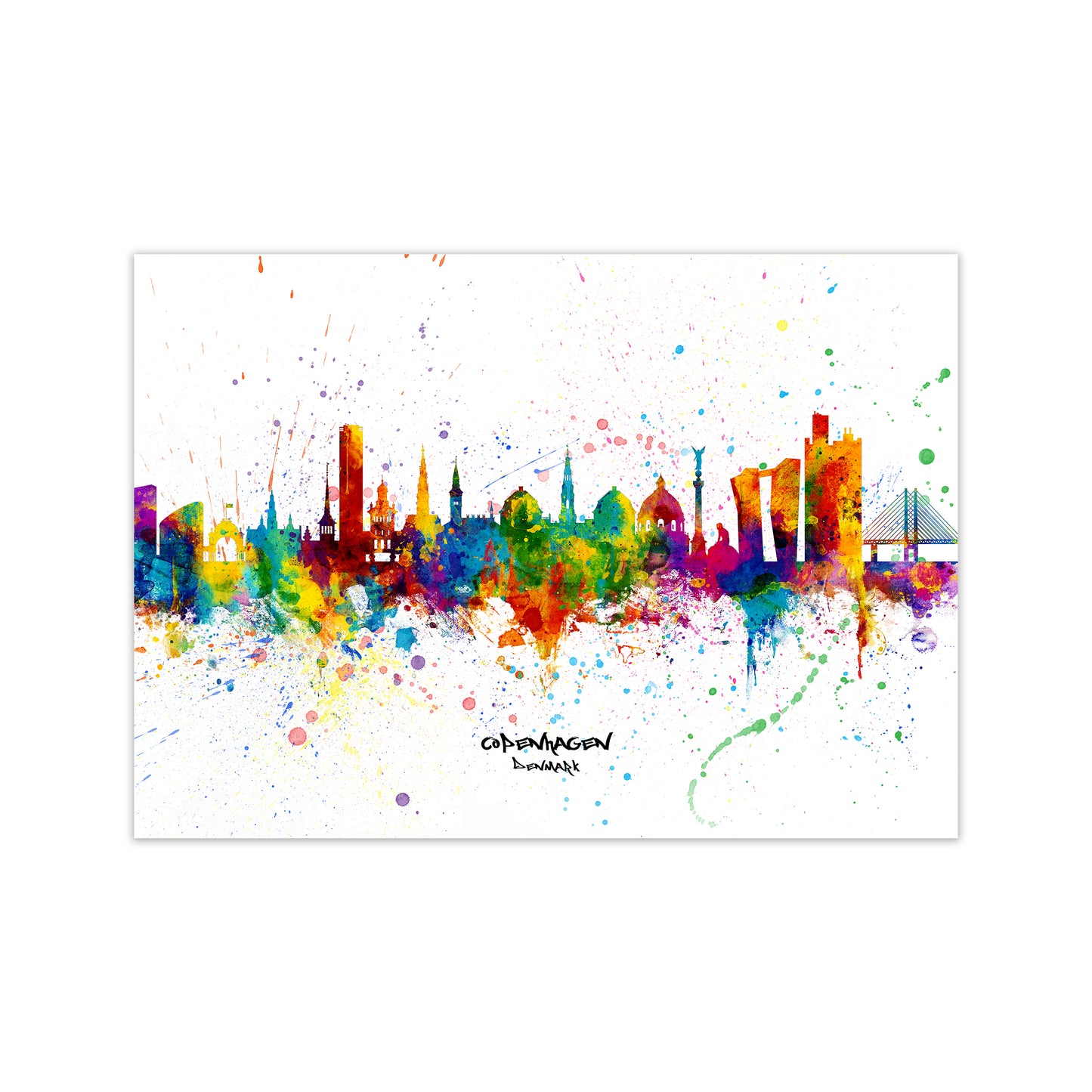 Copenhagen Denmark Skyline Splash original Giclée fine art print. Available both as a framed print, print only or vibrant canvas art. Art print from an original by Michael Tompsett ©