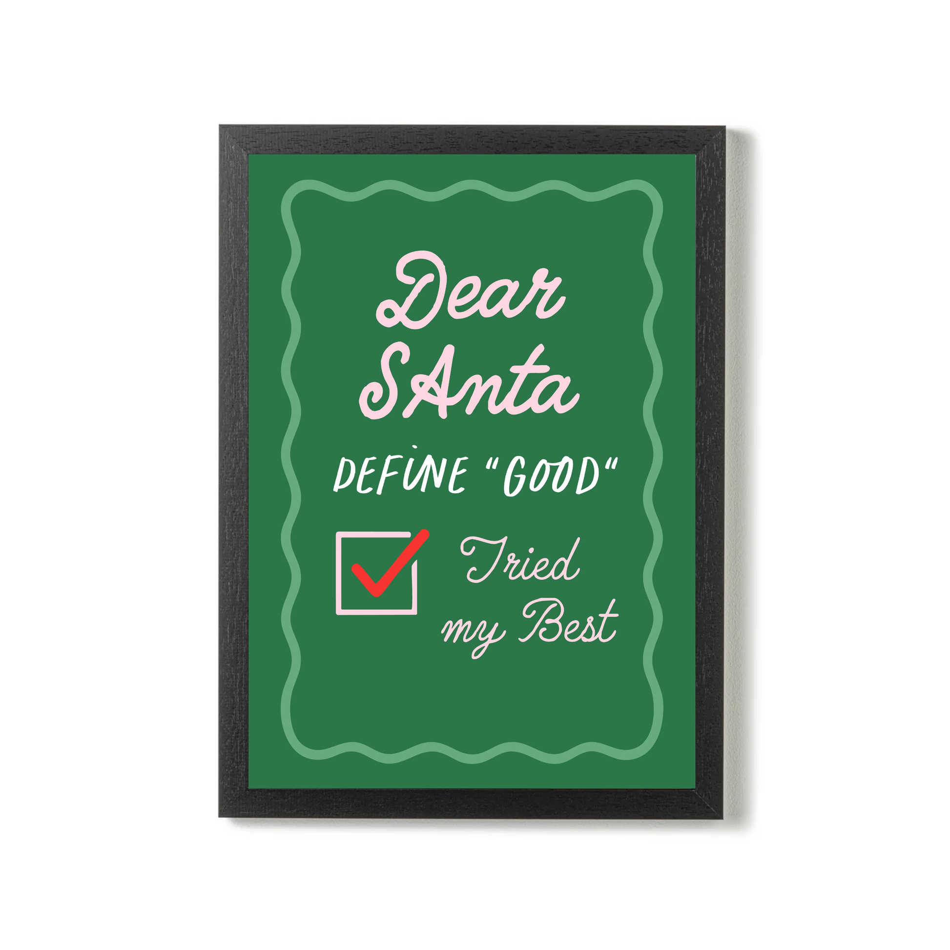 Dear Santa, Define Good original Giclée fine art print. Available both as a framed print, print only or vibrant canvas art. Art print from an original by Essentially Nomadic ©