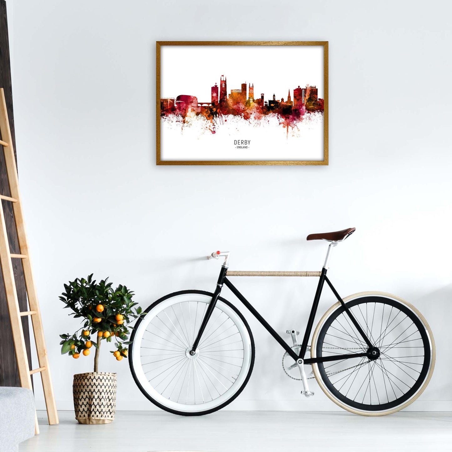 Derby England Skyline Red City Name Print by Michael Tompsett