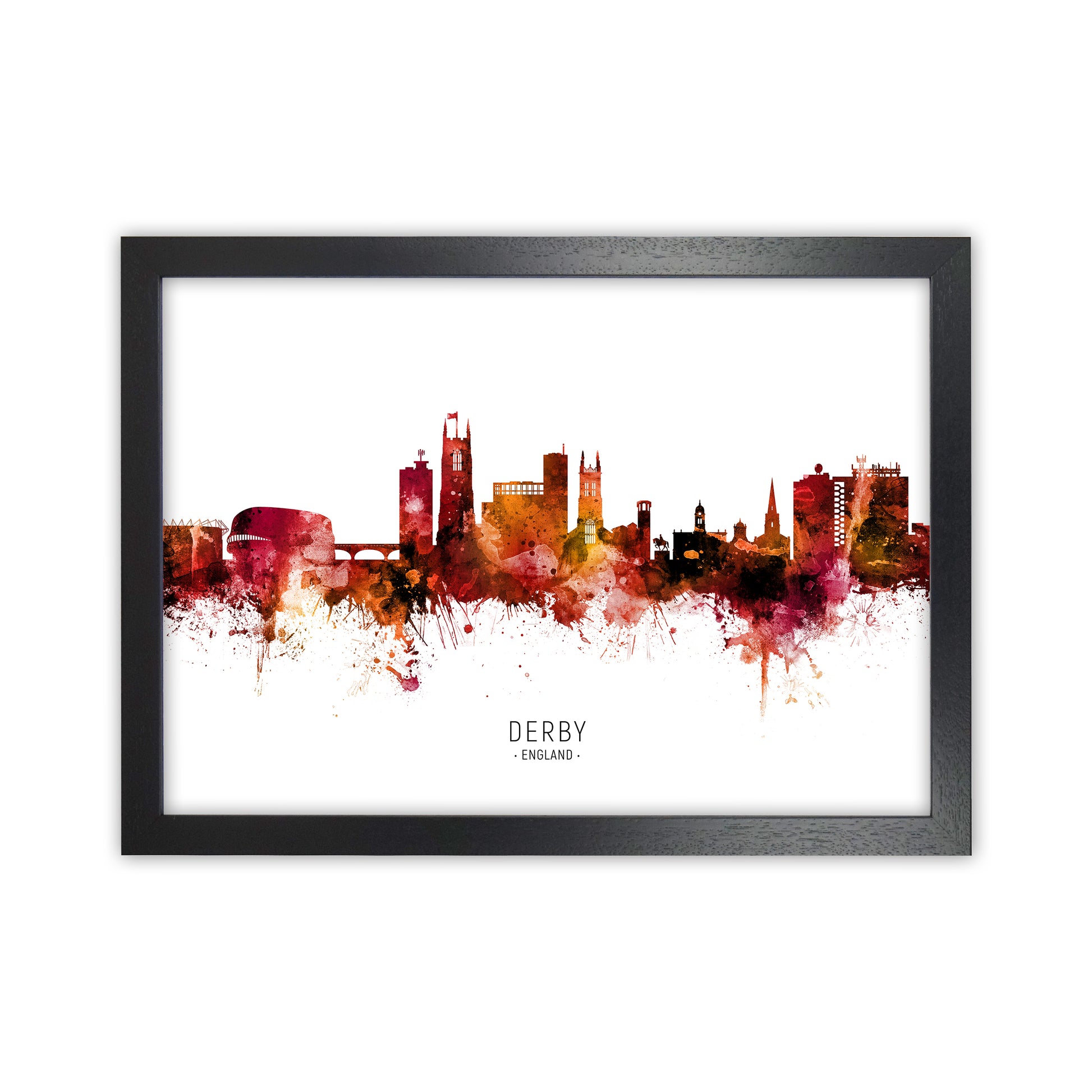 Derby England Skyline Red City Name original Giclée fine art print. Available both as a framed print, print only or vibrant canvas art. Art print from an original by Michael Tompsett ©