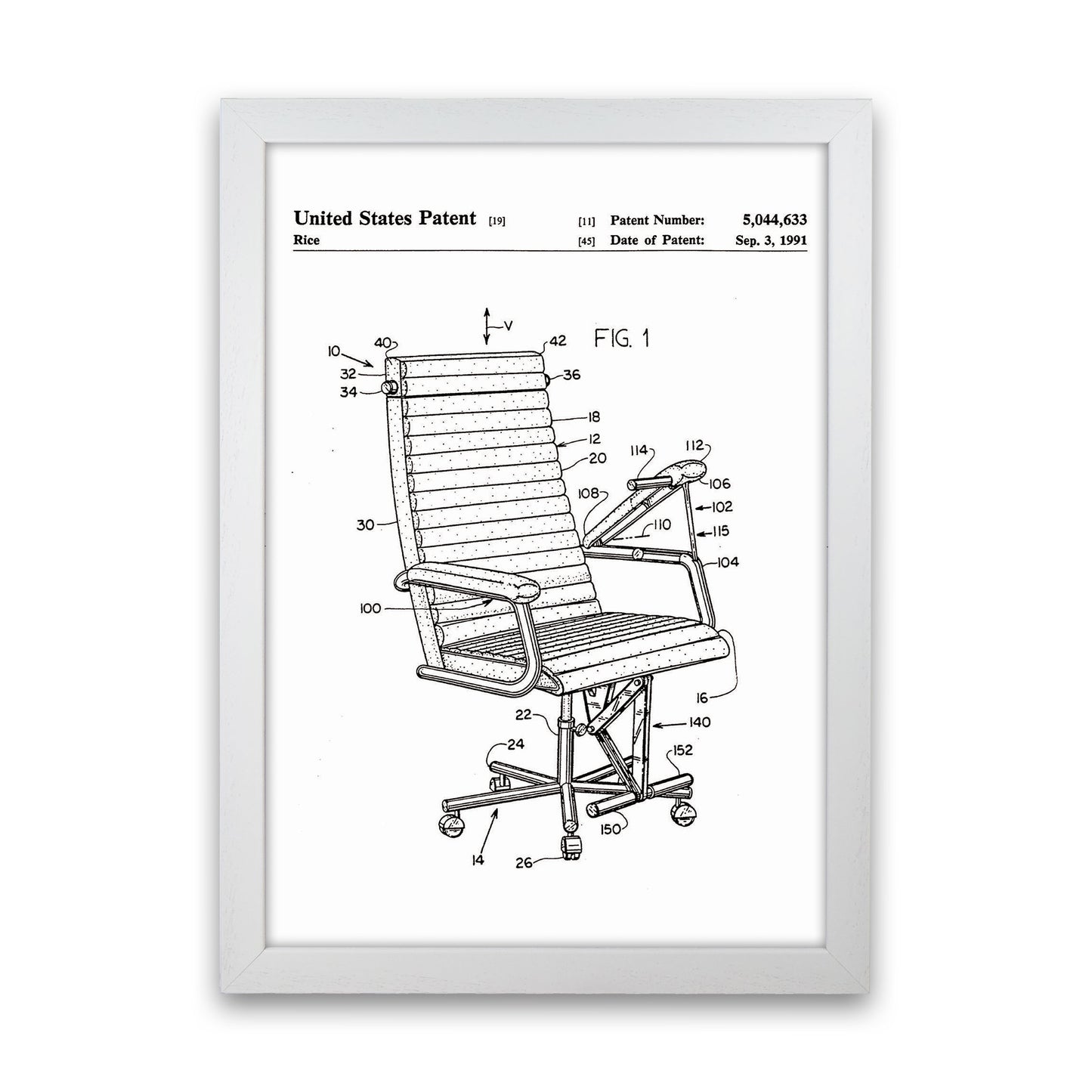 Desk Chair Patent original Giclée fine art print. Available both as a framed print, print only or vibrant canvas art. Art print from an original by Jason Stanley ©