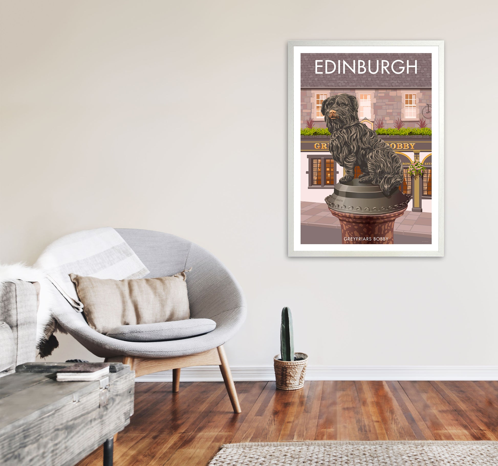 Most customers choose to have their print framed by our in-house team who manufacture all our frames by hand to order. Options of black grain, white grain or honey oak woods are available from sustainable sources. Our framed art is glazed with crystal styrene for safety during transportation and in the home and to ensure longevity. Frames arrive ready to hang on the wall.