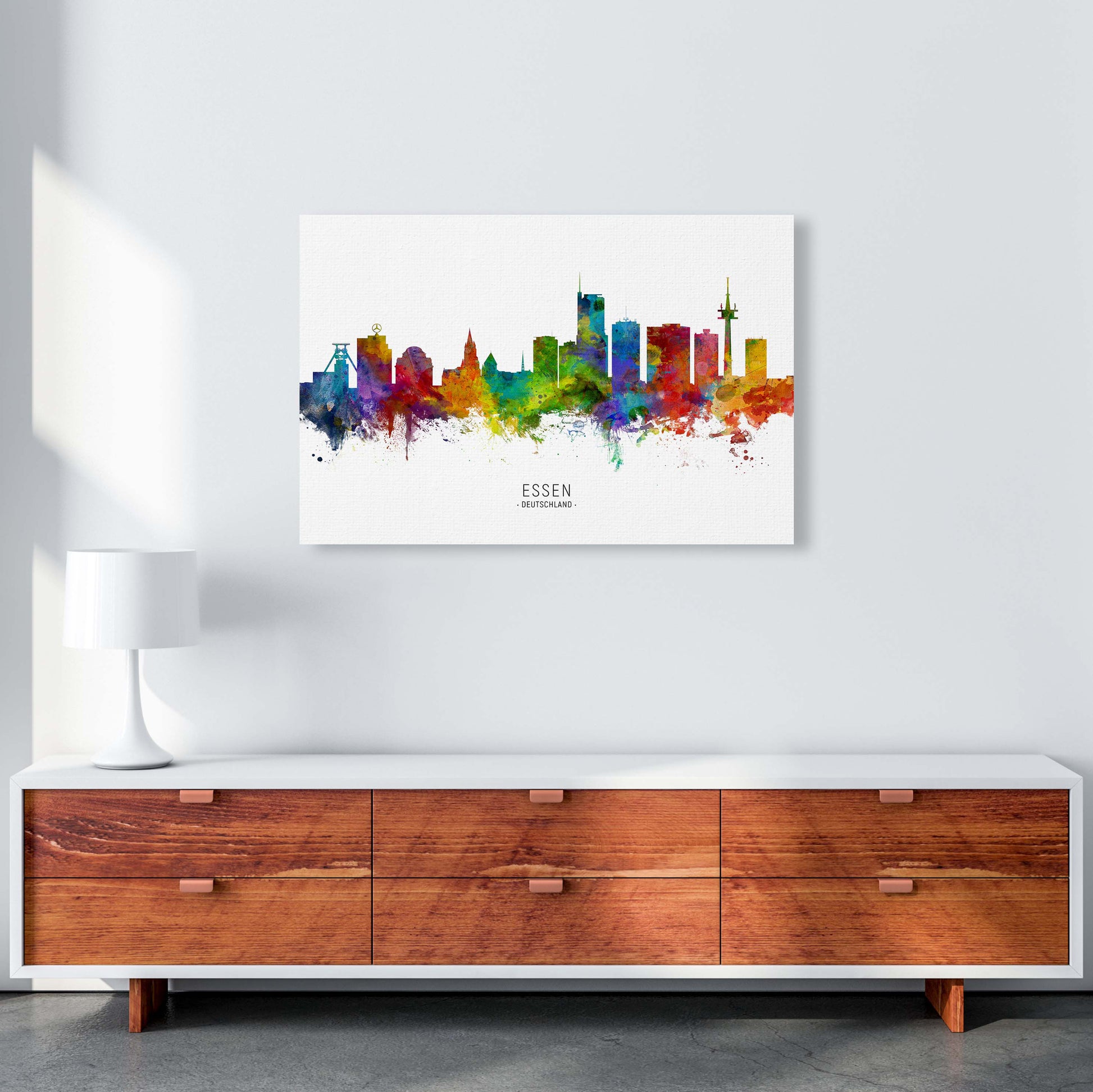Essen Deutschland Skyline original Giclée fine art print. Available both as a framed print, print only or vibrant canvas art. Art print from an original by Michael Tompsett ©