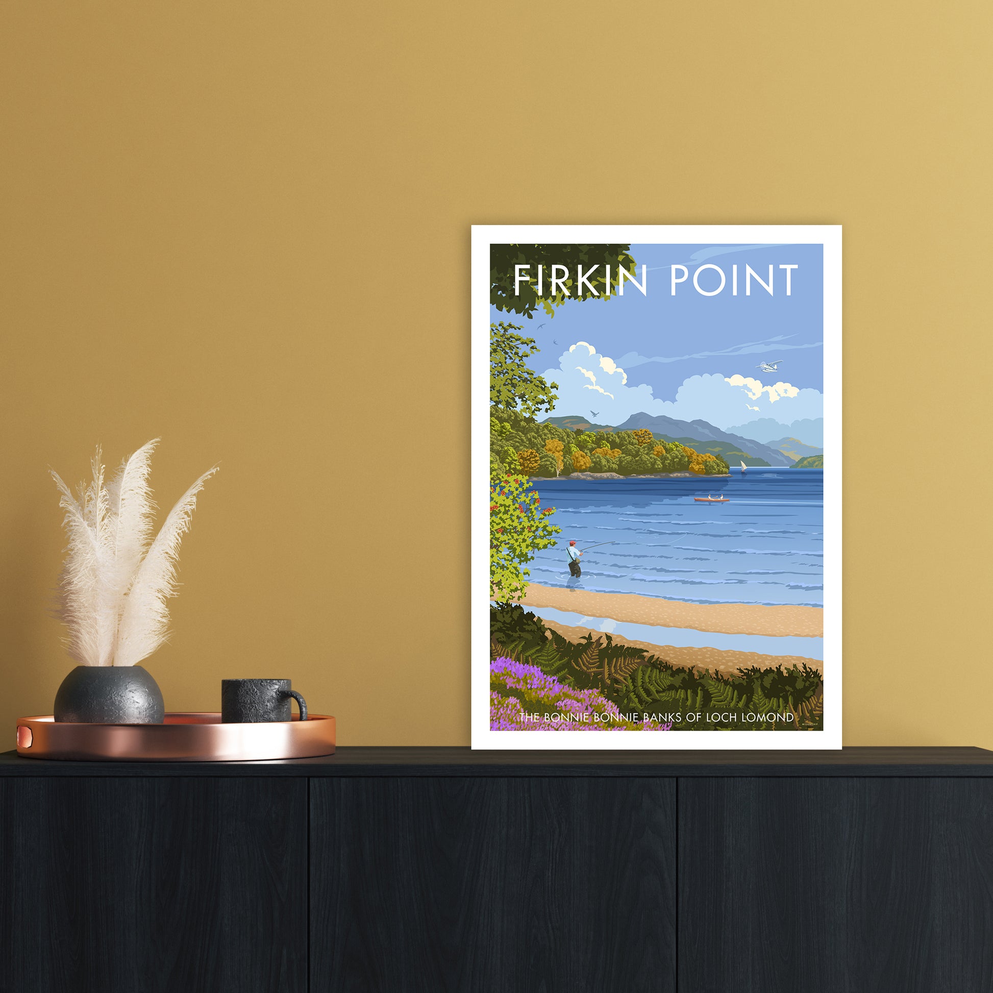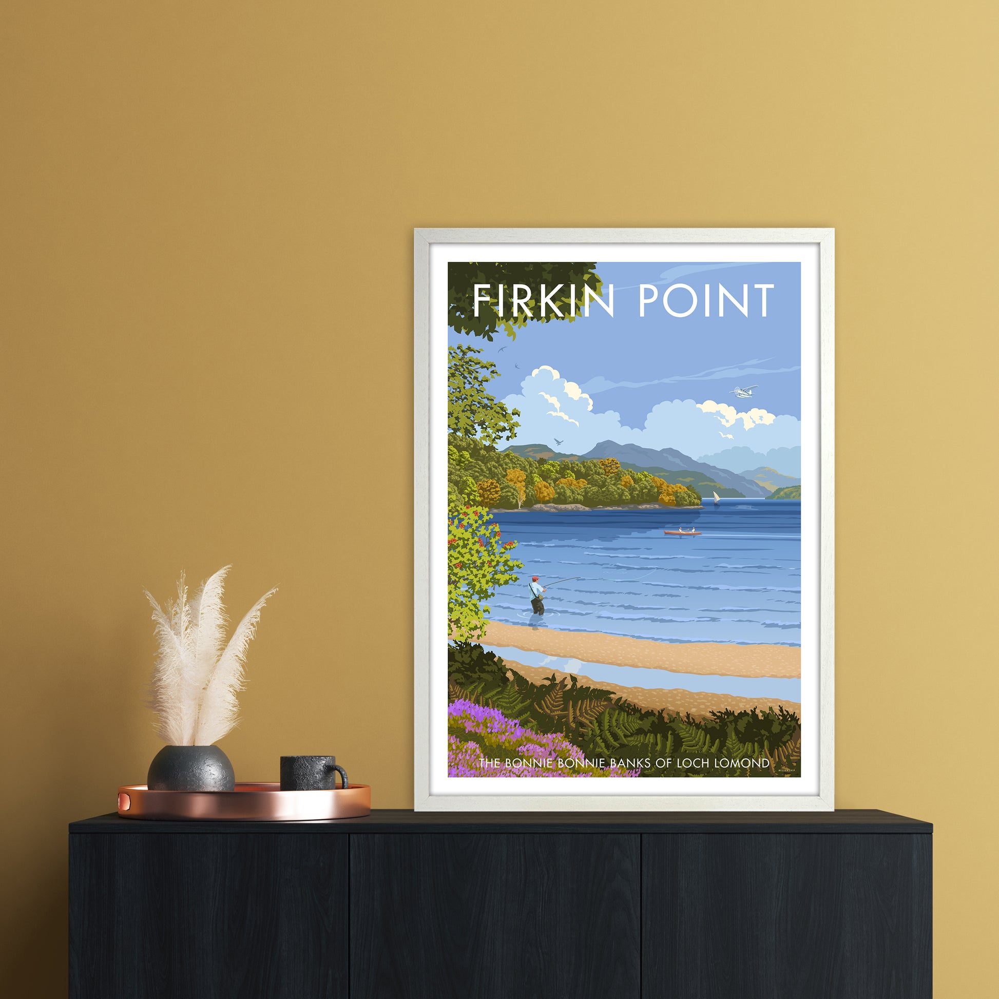 Most customers choose to have their print framed by our in-house team who manufacture all our frames by hand to order. Options of black grain, white grain or honey oak woods are available from sustainable sources. Our framed art is glazed with crystal styrene for safety during transportation and in the home and to ensure longevity. Frames arrive ready to hang on the wall.