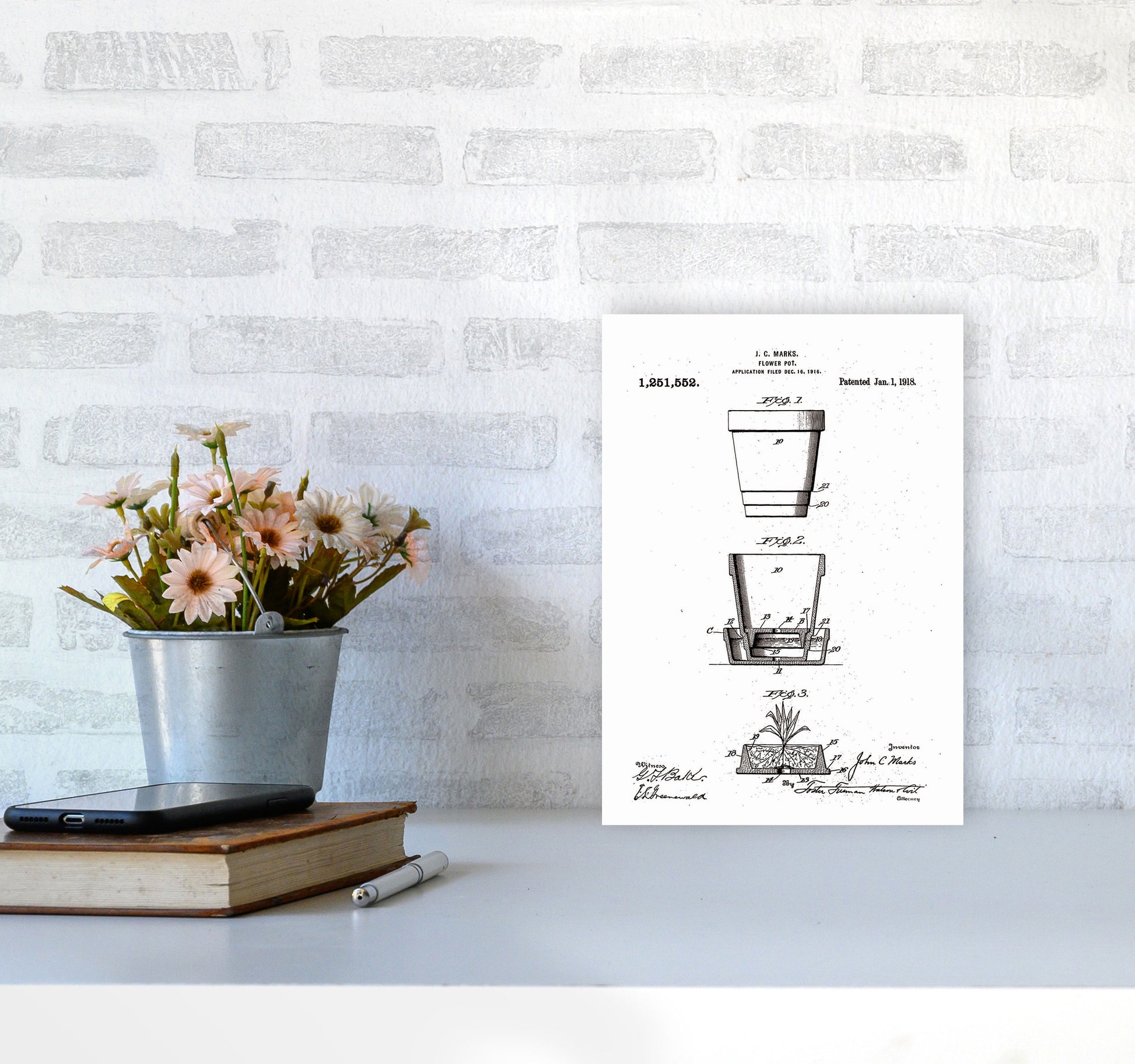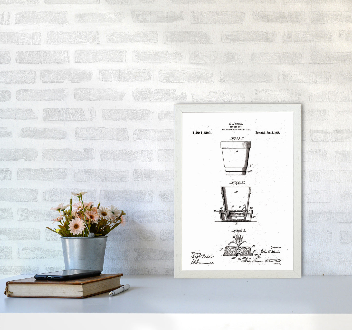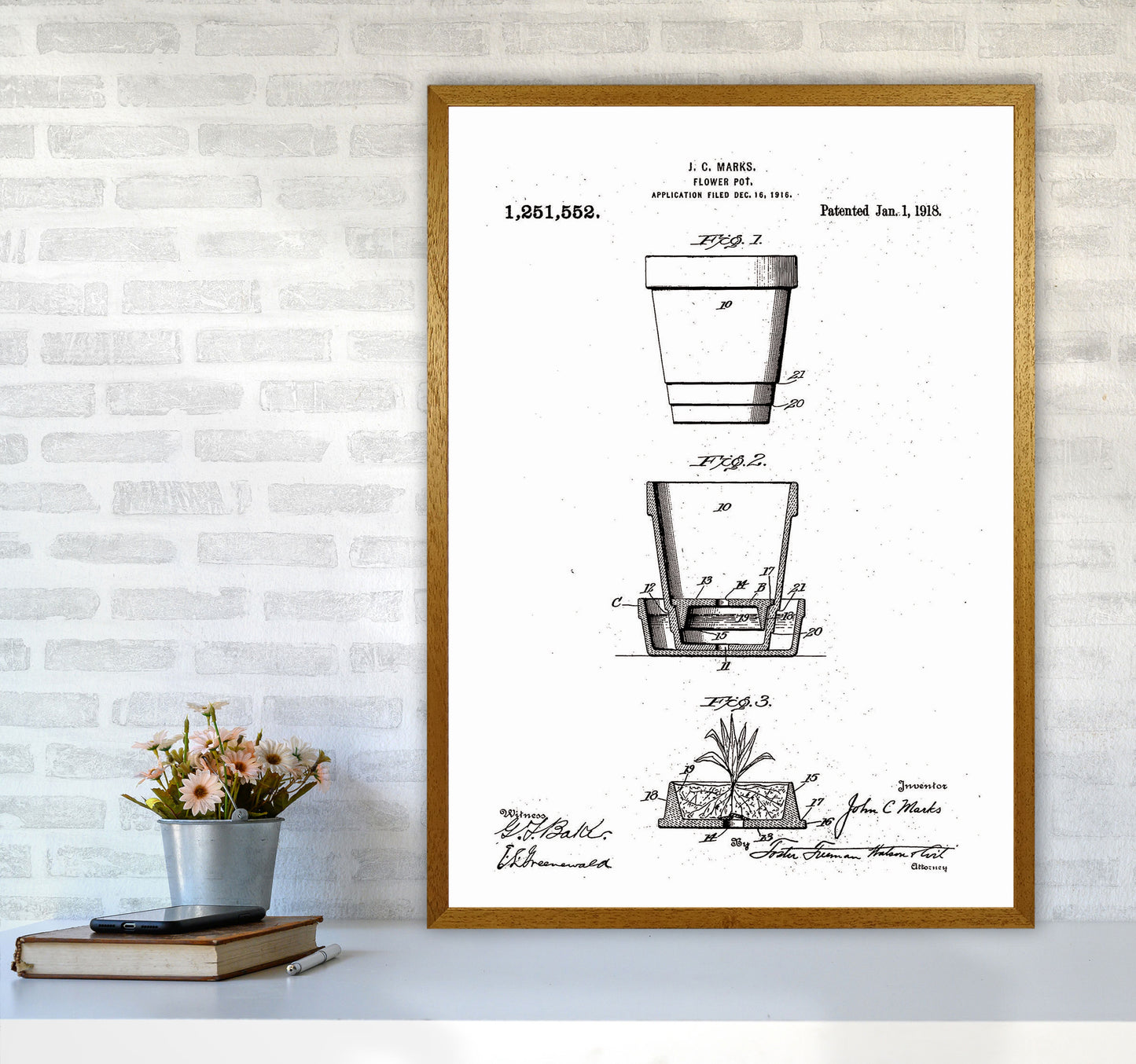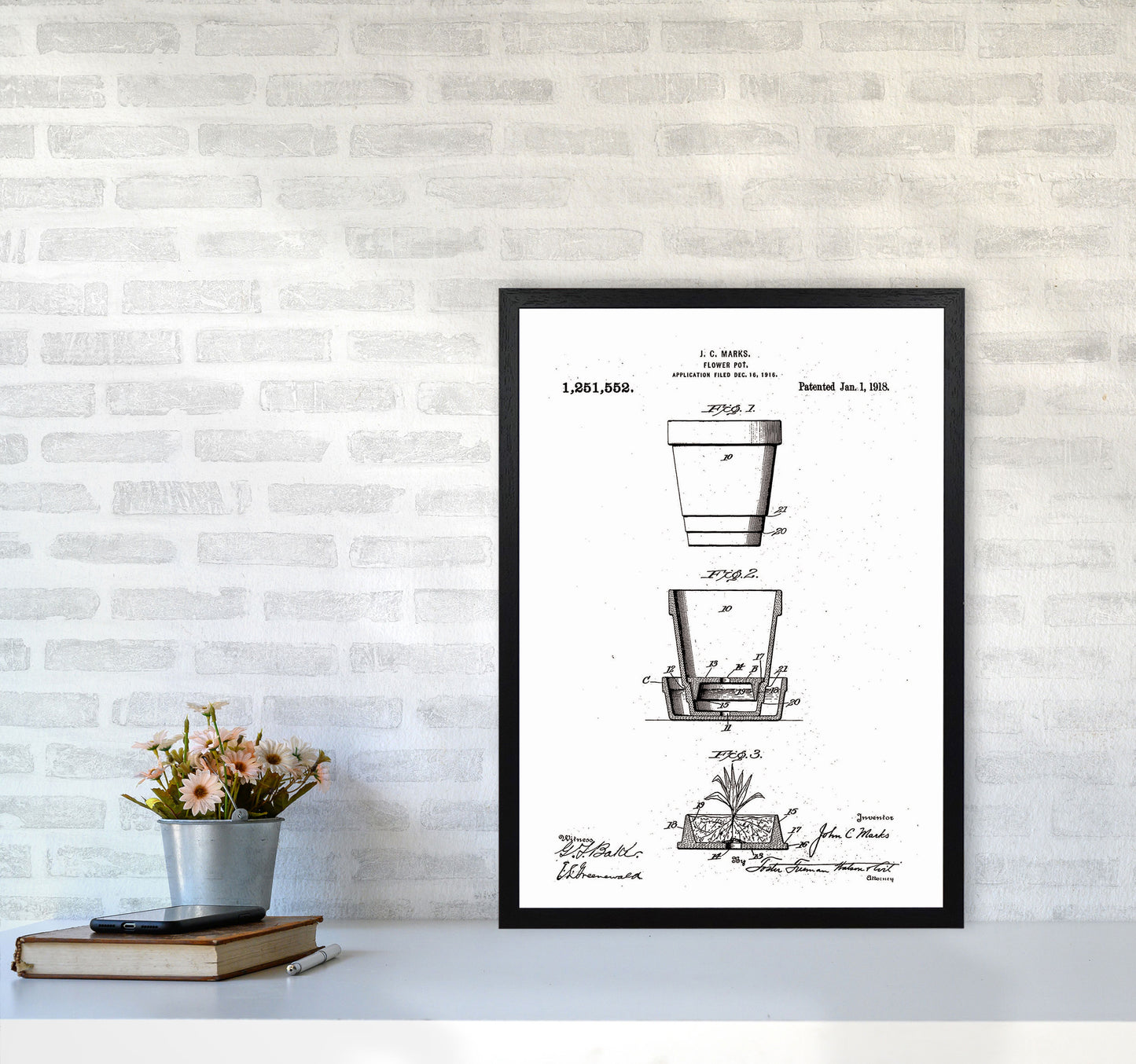 Flower Pot Patent original Giclée fine art print. Available both as a framed print, print only or vibrant canvas art. Art print from an original by Jason Stanley ©