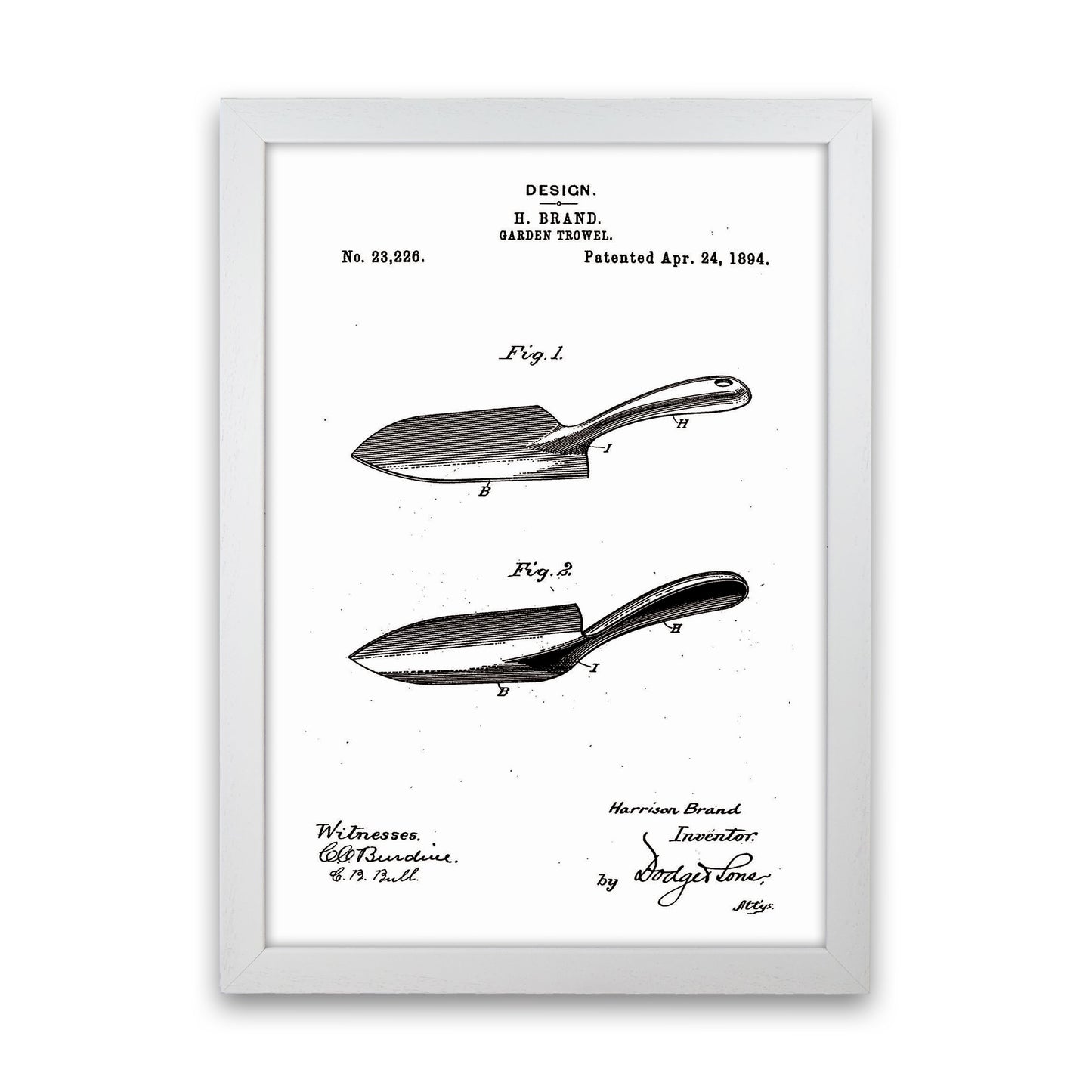 Garden Shovel Patent original Giclée fine art print. Available both as a framed print, print only or vibrant canvas art. Art print from an original by Jason Stanley ©
