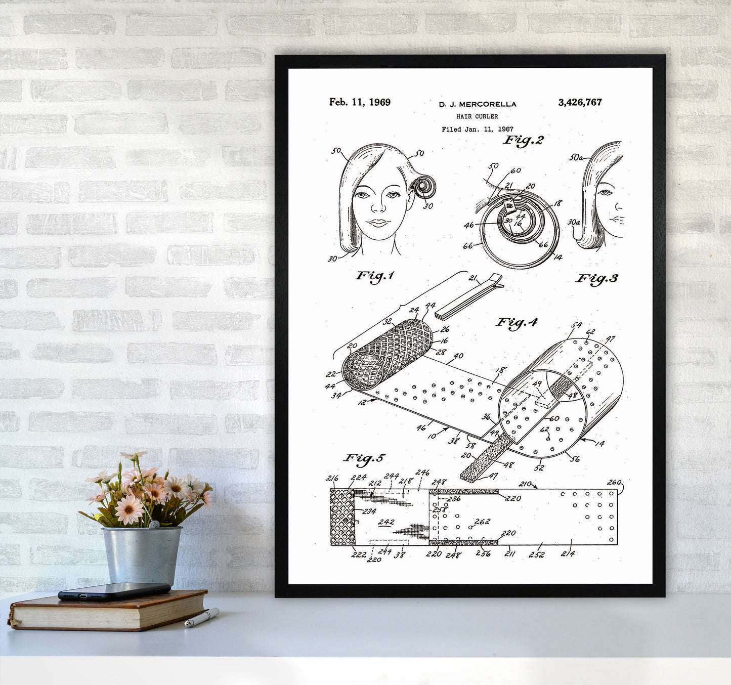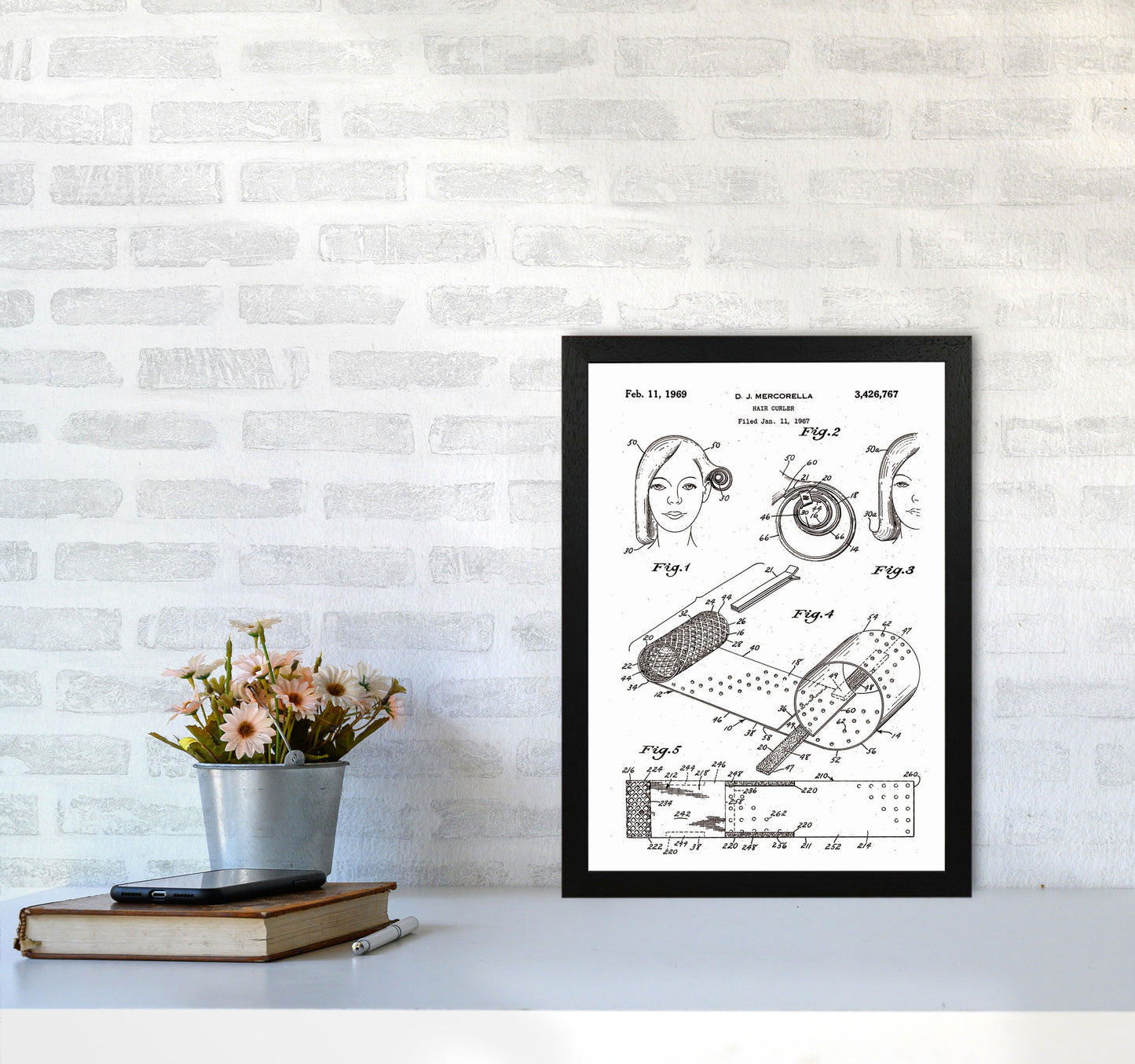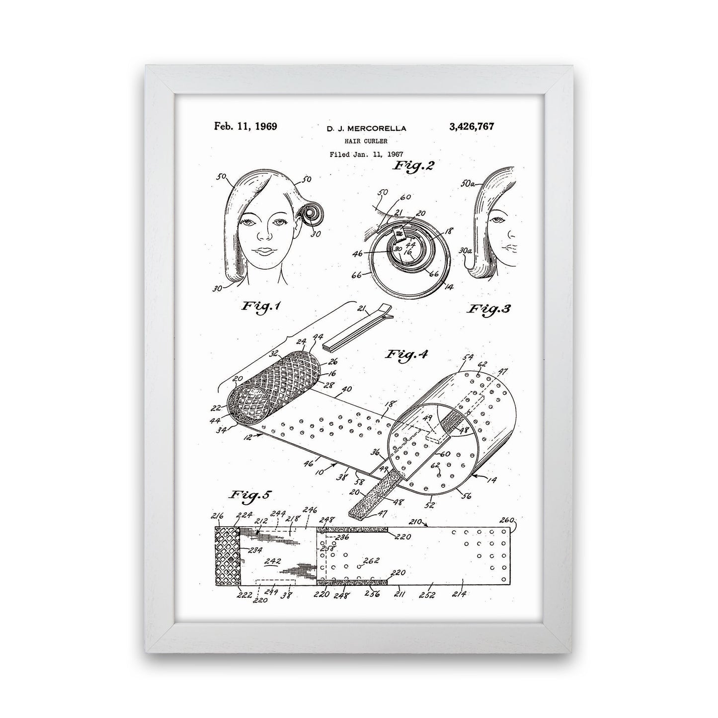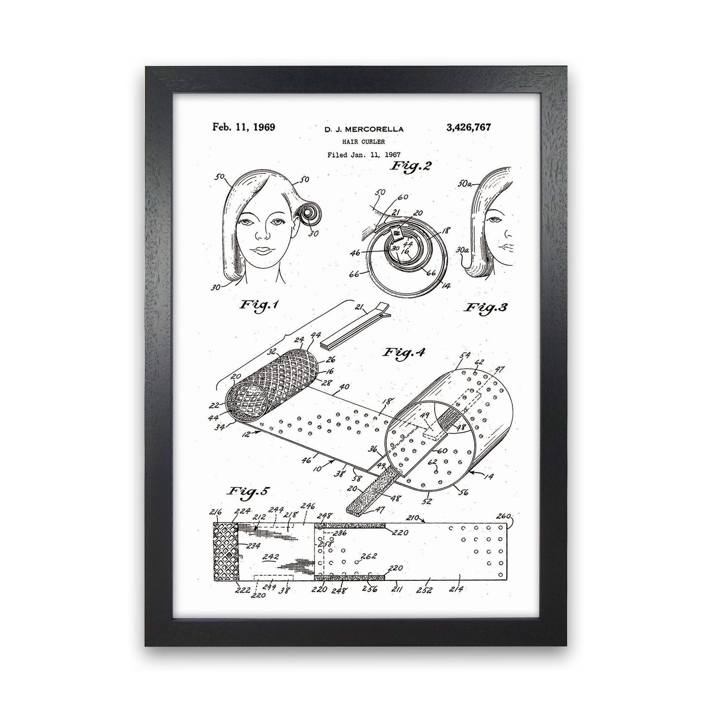 Hair Curler Patent original Giclée fine art print. Available both as a framed print, print only or vibrant canvas art. Art print from an original by Jason Stanley ©