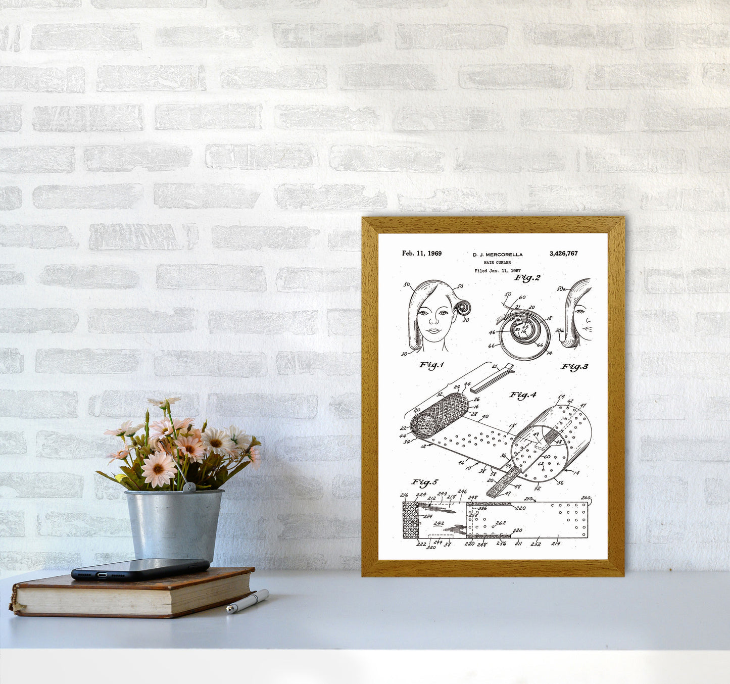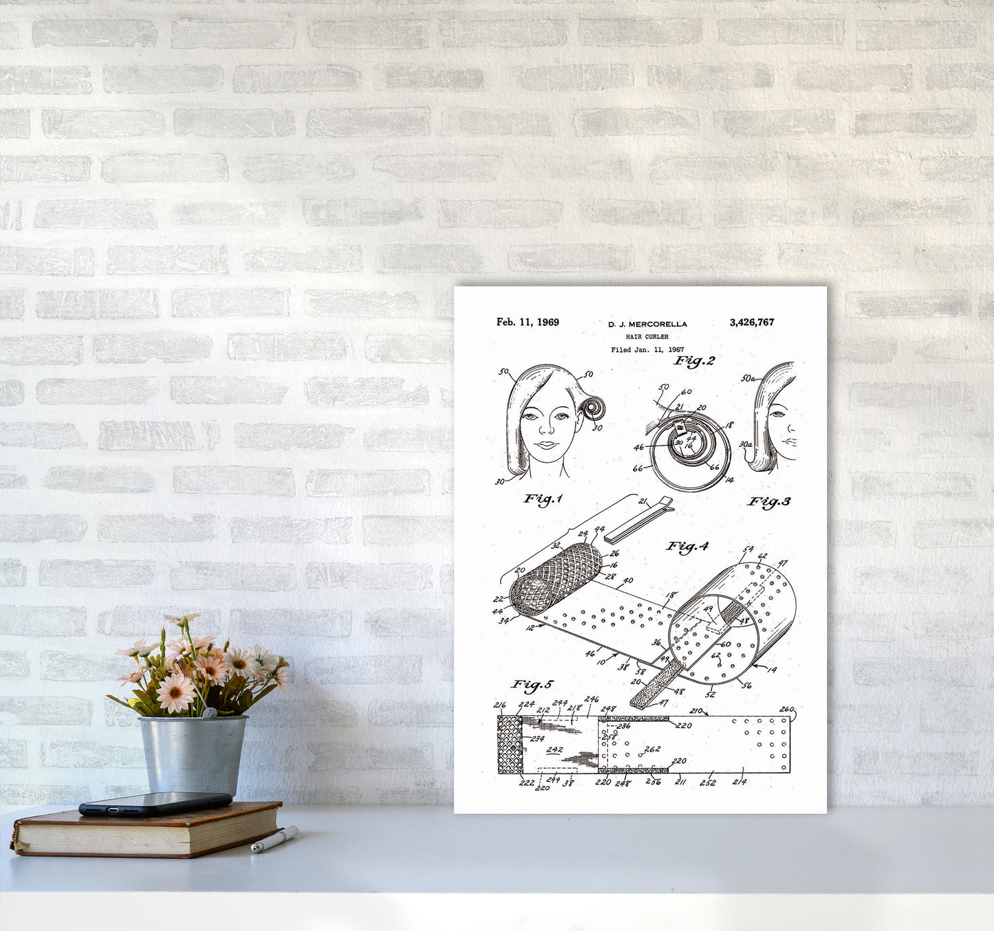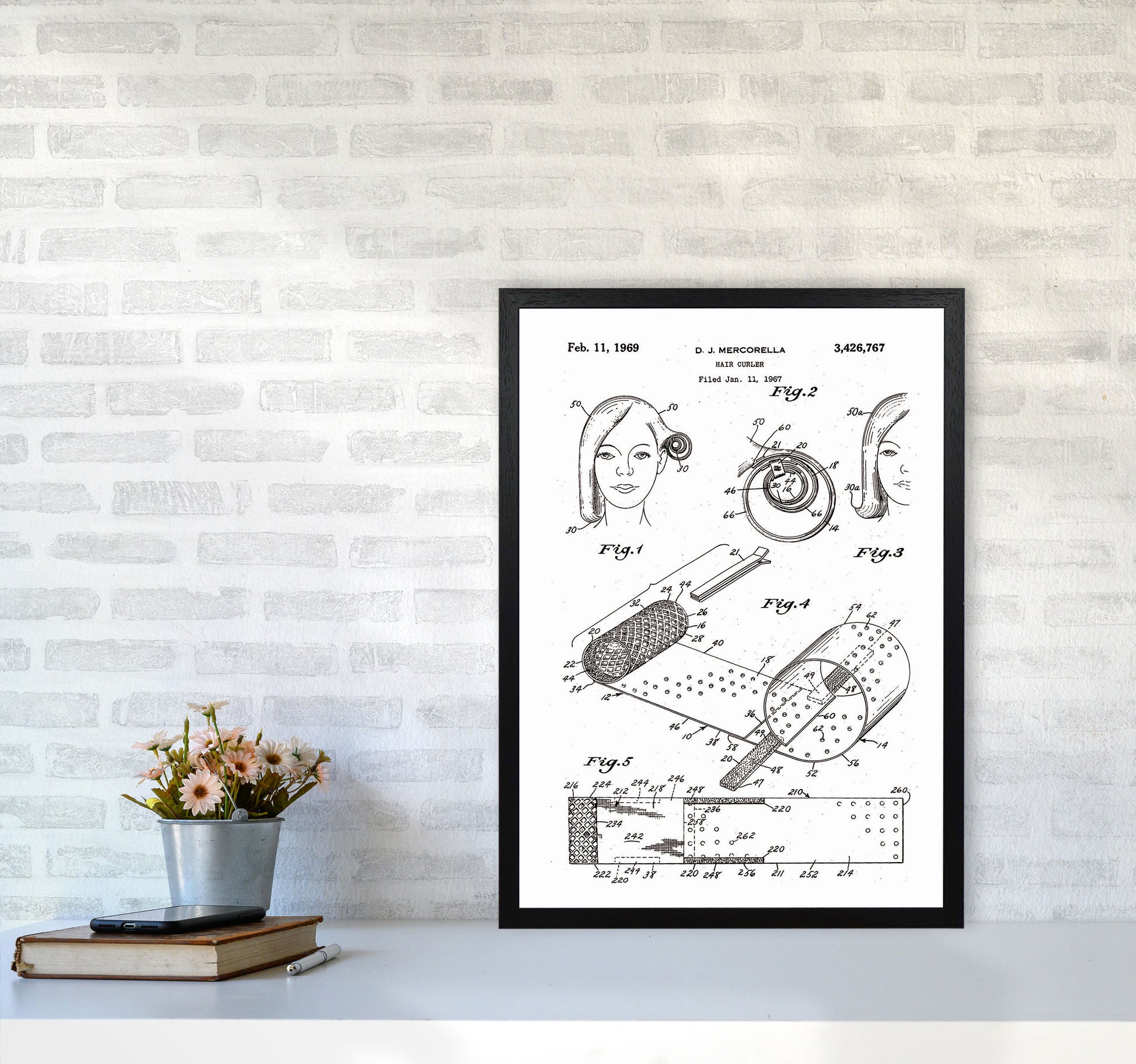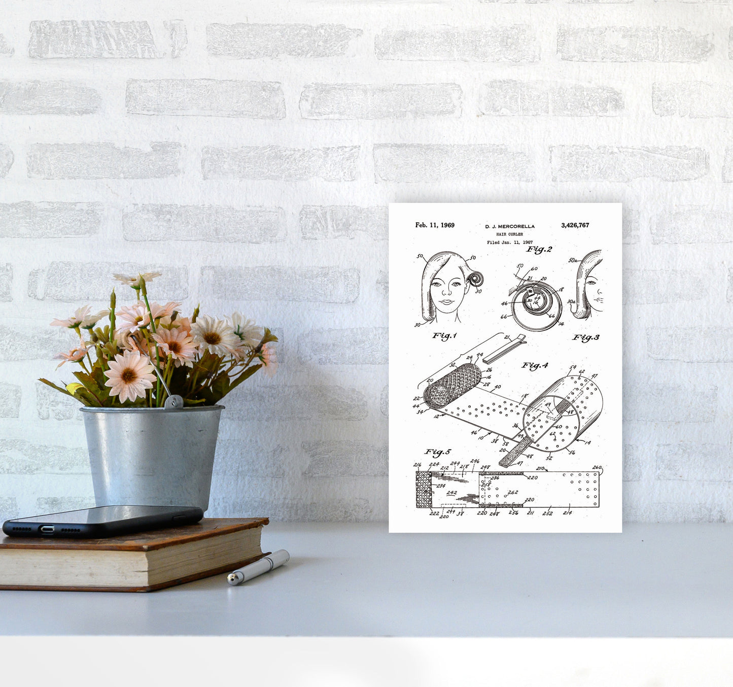 Hair Curler Patent original Giclée fine art print. Available both as a framed print, print only or vibrant canvas art. Art print from an original by Jason Stanley ©