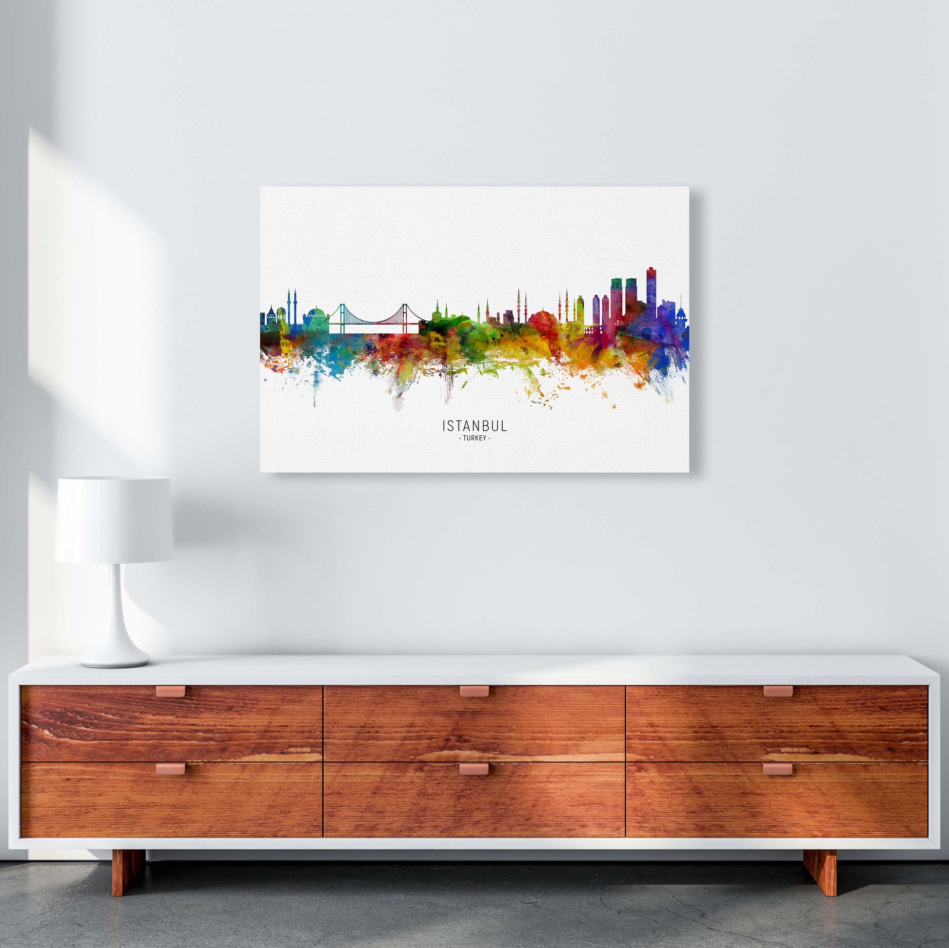 Istanbul Turkey Skyline original Giclée fine art print. Available both as a framed print, print only or vibrant canvas art. Art print from an original by Michael Tompsett ©