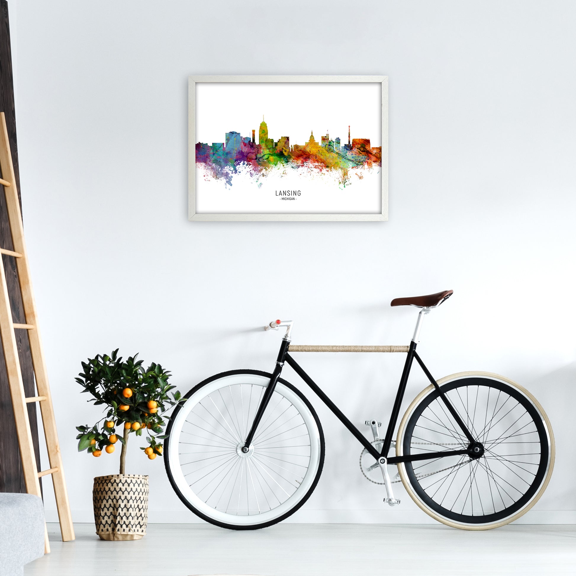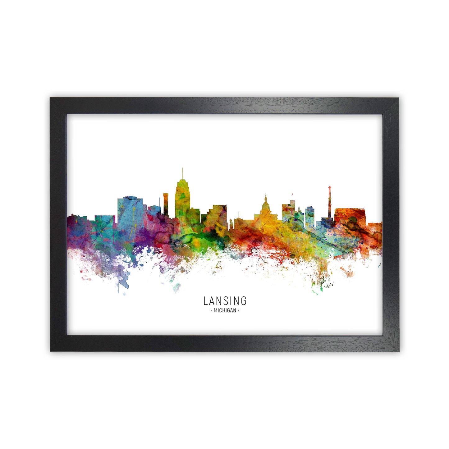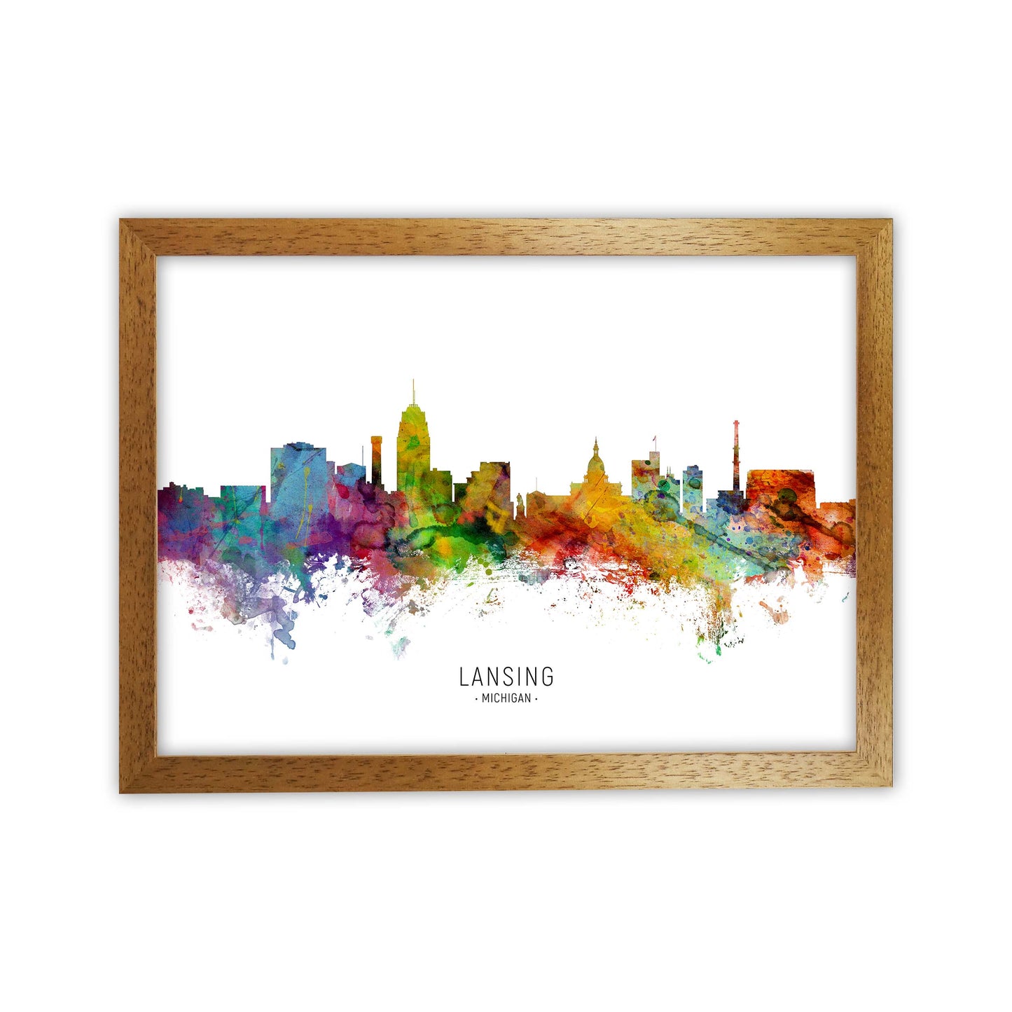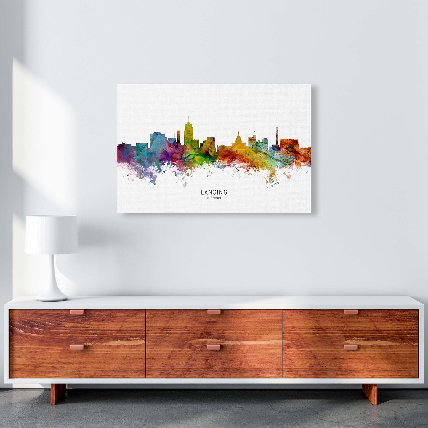Lansing Michigan Skyline original Giclée fine art print. Available both as a framed print, print only or vibrant canvas art. Art print from an original by Michael Tompsett ©