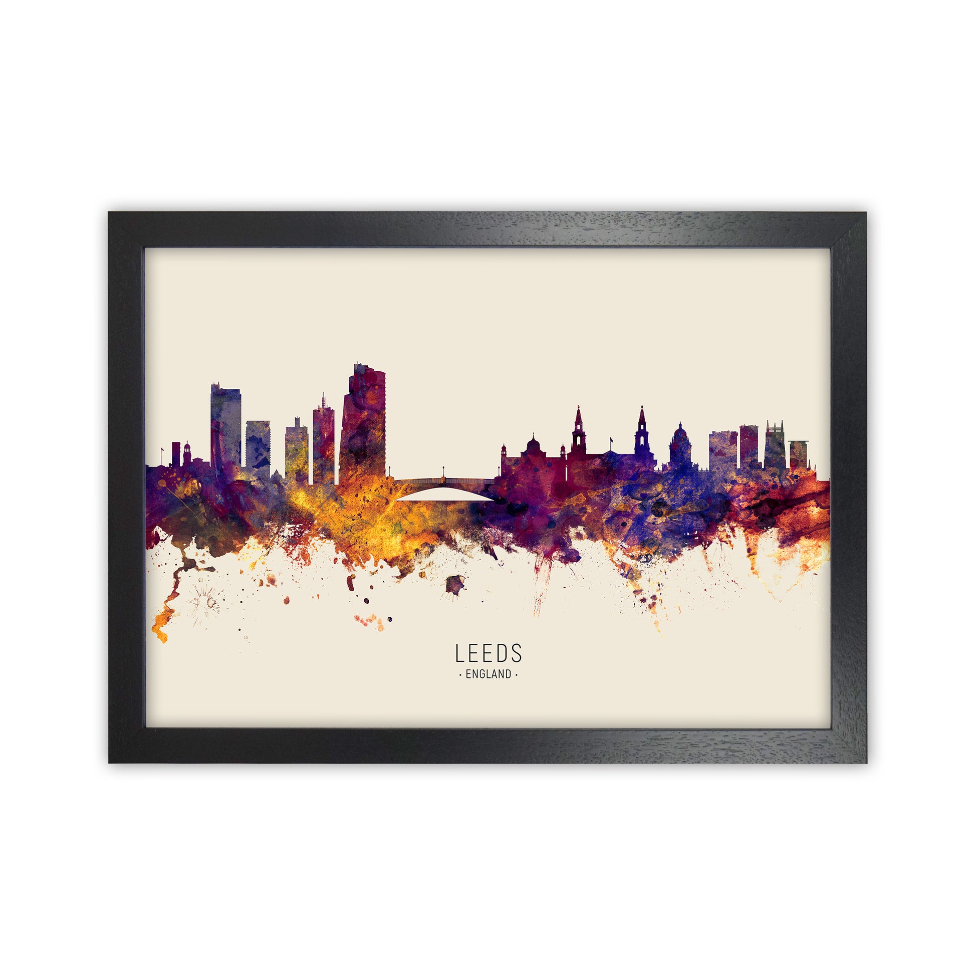 Leeds England Skyline Autumn City Name original Giclée fine art print. Available both as a framed print, print only or vibrant canvas art. Art print from an original by Michael Tompsett ©