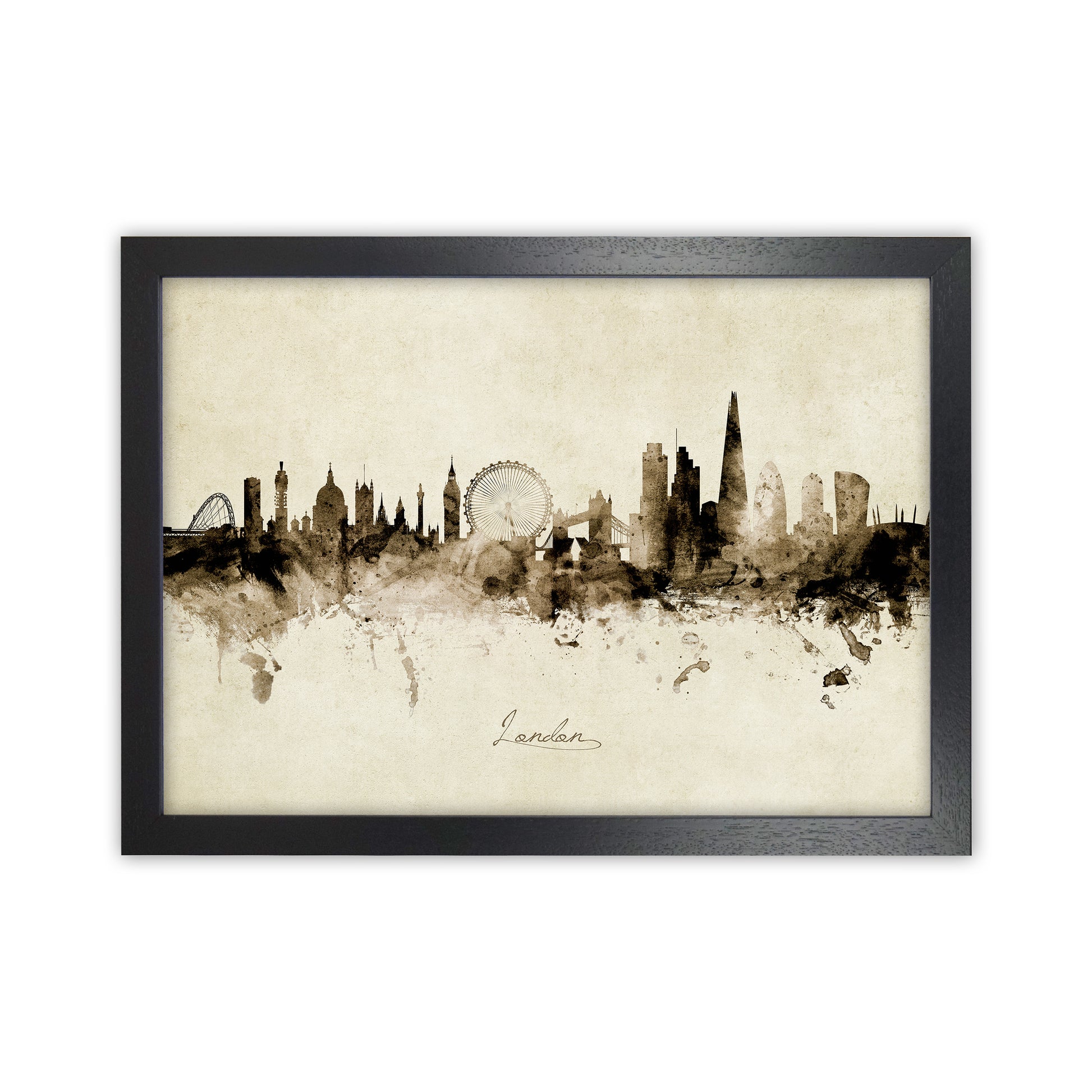 London England Skyline Vintage original Giclée fine art print. Available both as a framed print, print only or vibrant canvas art. Art print from an original by Michael Tompsett ©
