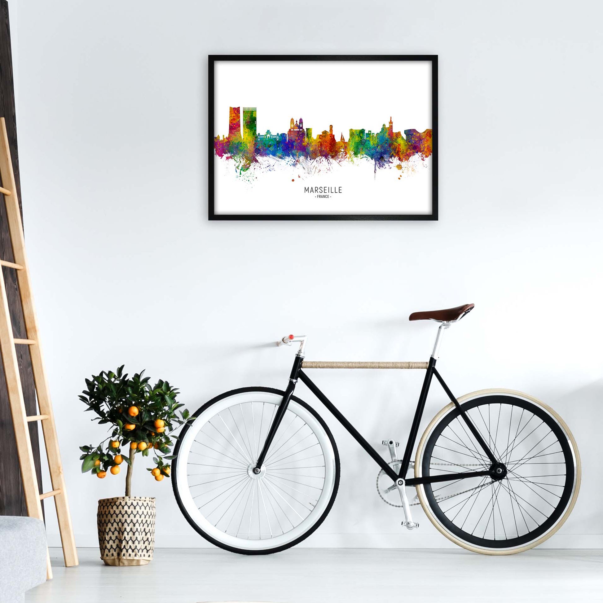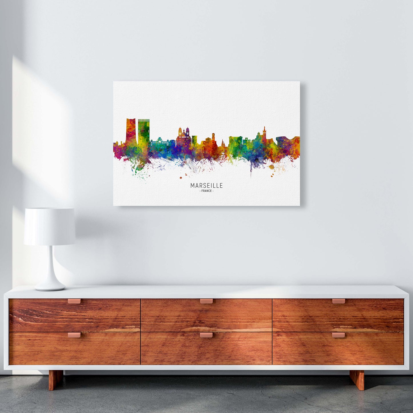 Marseille France Skyline original Giclée fine art print. Available both as a framed print, print only or vibrant canvas art. Art print from an original by Michael Tompsett ©