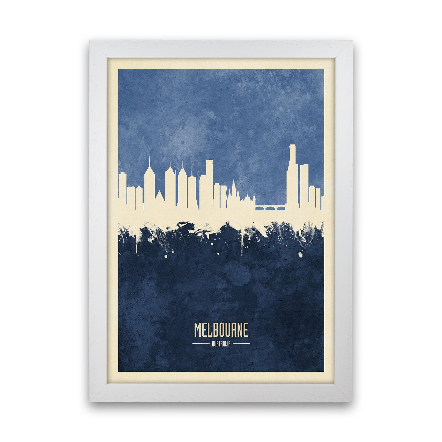 Melbourne Australia Skyline Portrait Navy Art Print by Michael Tompsett