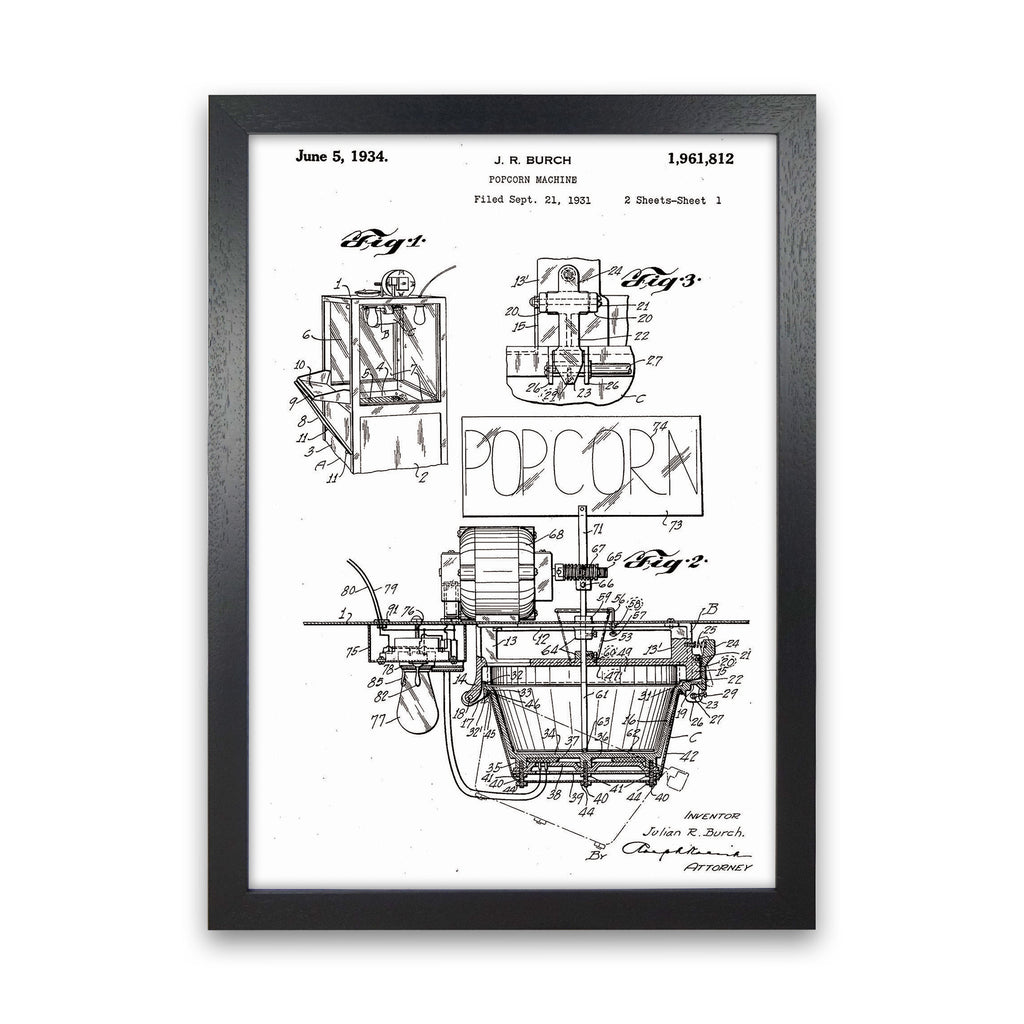 Popcorn Machine Patent 2 original Giclée fine art print. Available both as a framed print, print only or vibrant canvas art. Art print from an original by Jason Stanley ©
