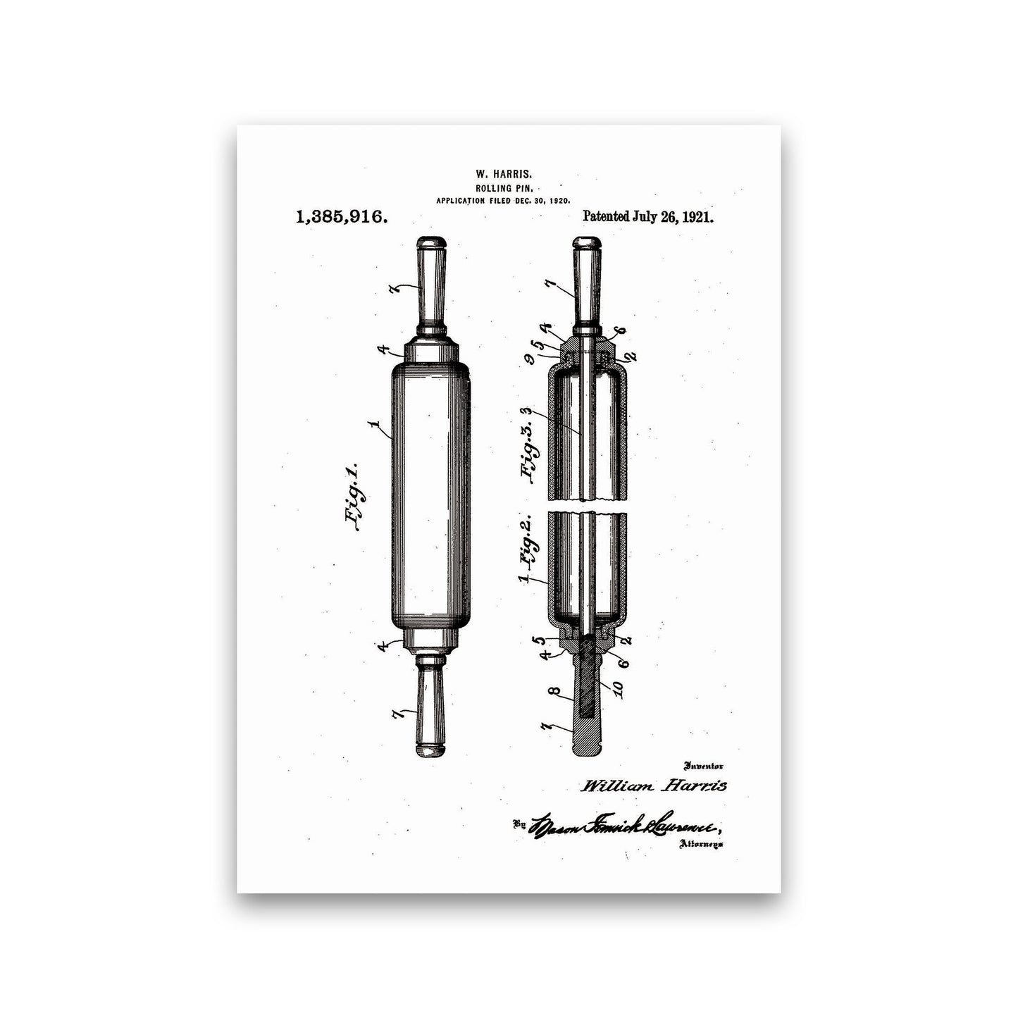 Rolling Pin Patent original Giclée fine art print. Available both as a framed print, print only or vibrant canvas art. Art print from an original by Jason Stanley ©