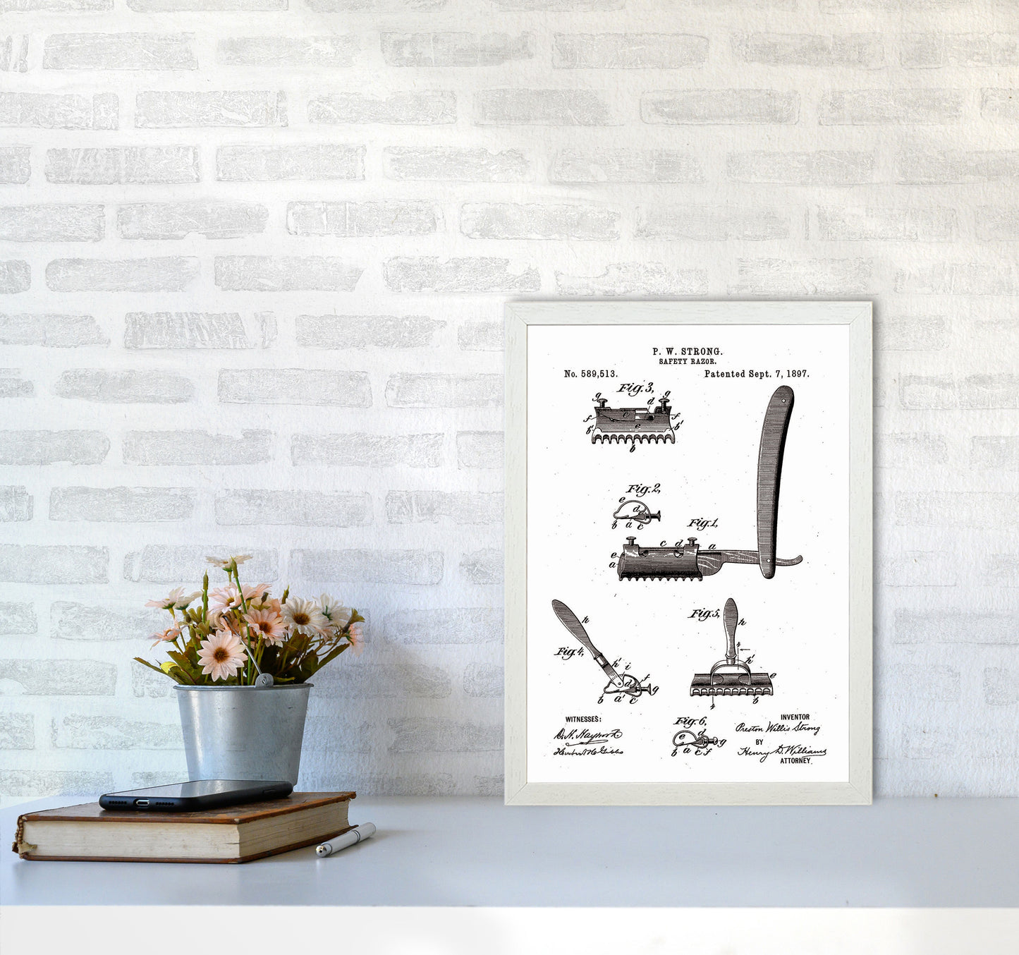 Safety Razor Patent original Giclée fine art print. Available both as a framed print, print only or vibrant canvas art. Art print from an original by Jason Stanley ©