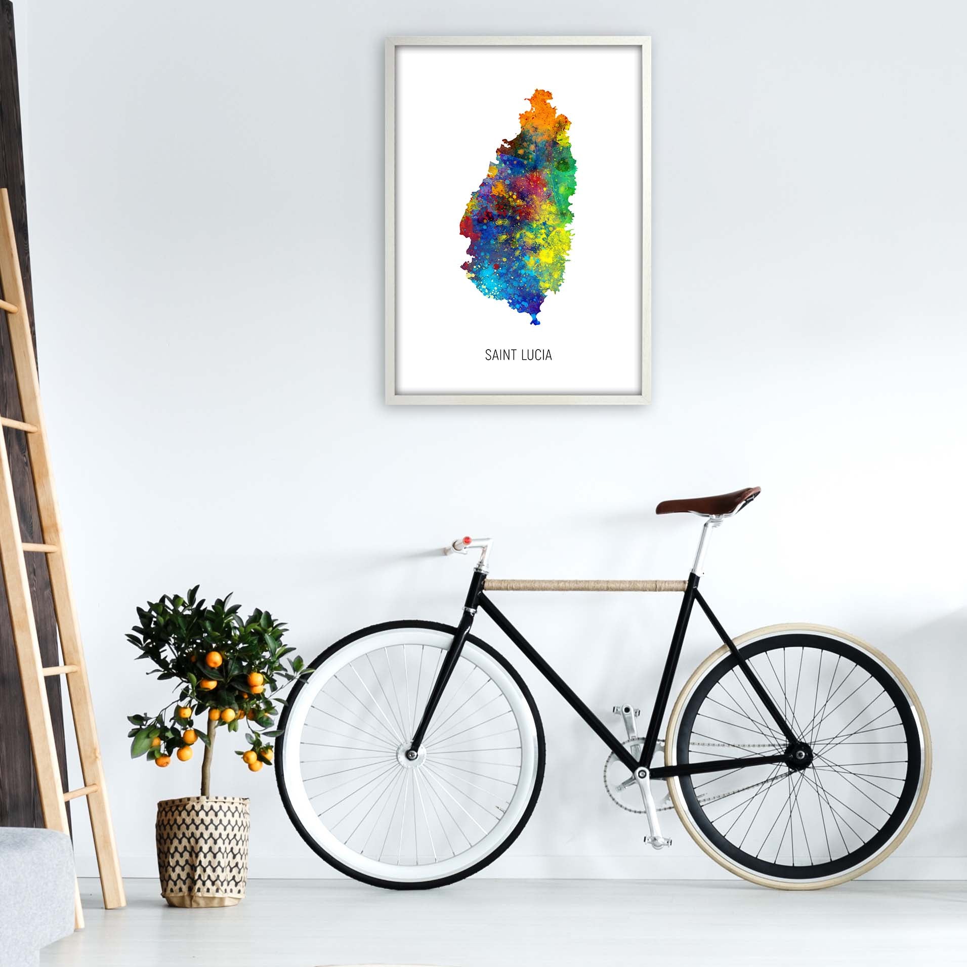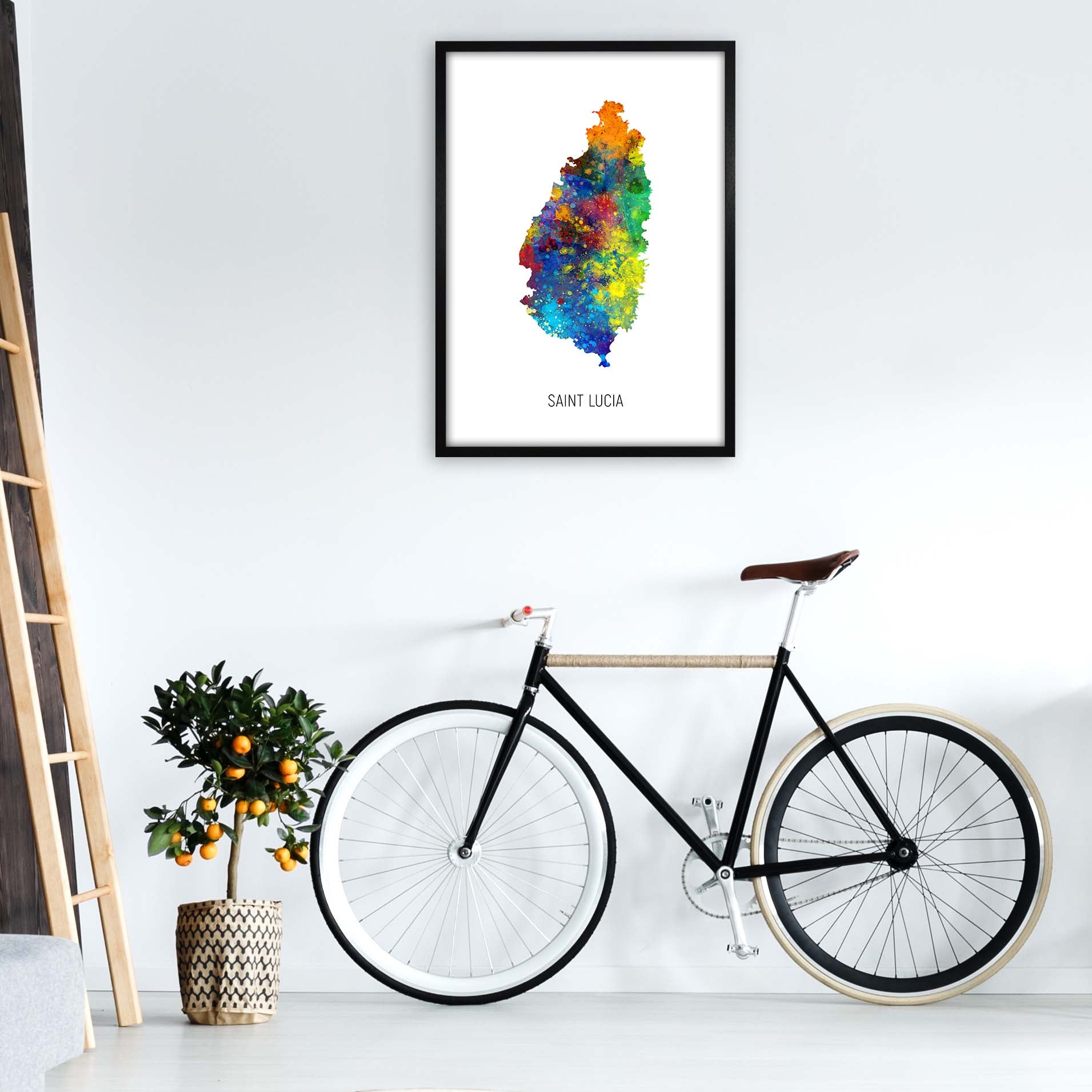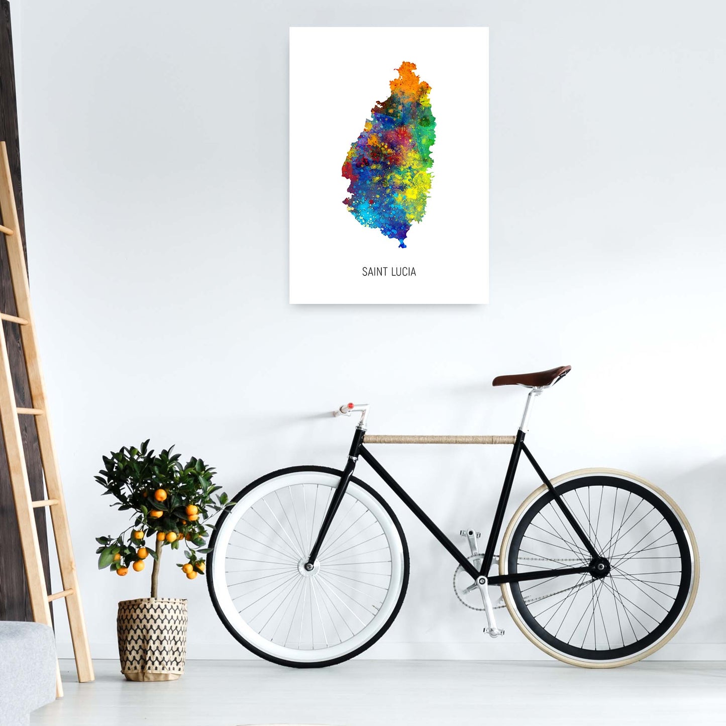 Saint Lucia Watercolour Map original Giclée fine art print. Available both as a framed print, print only or vibrant canvas art. Art print from an original by Michael Tompsett ©