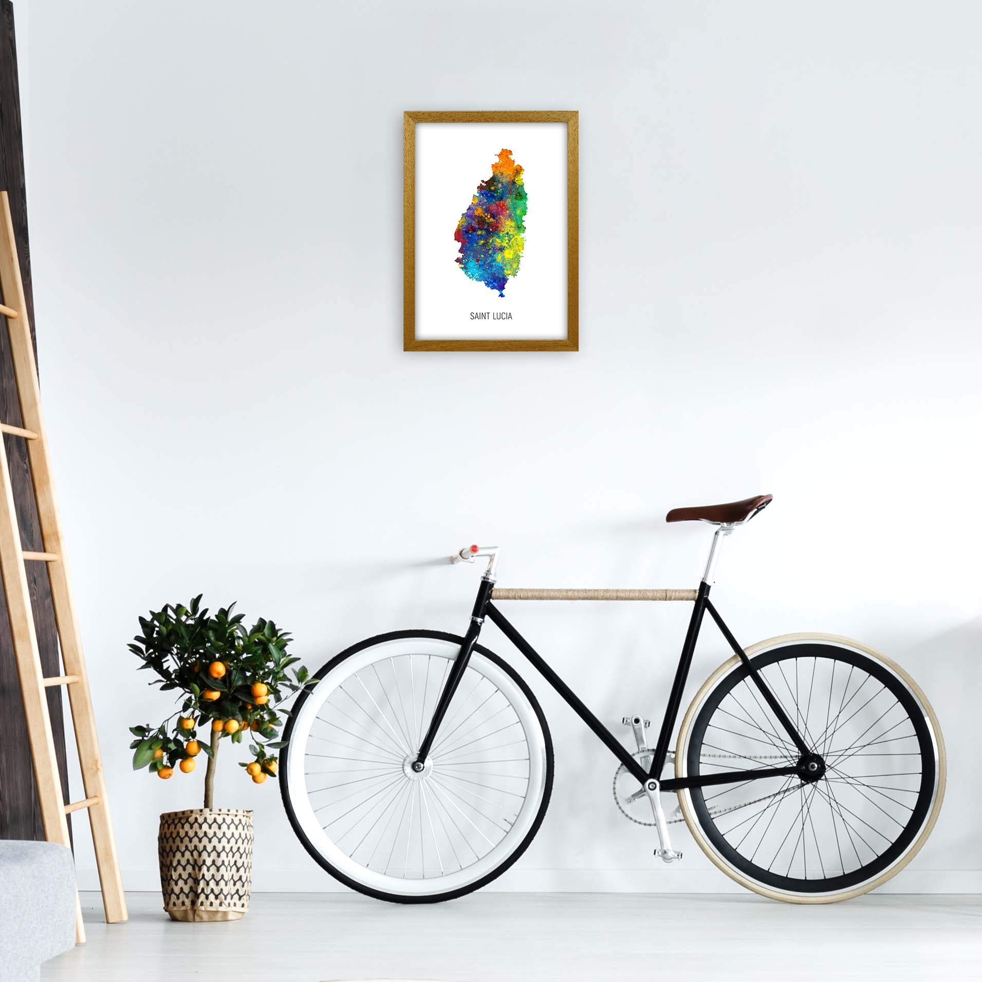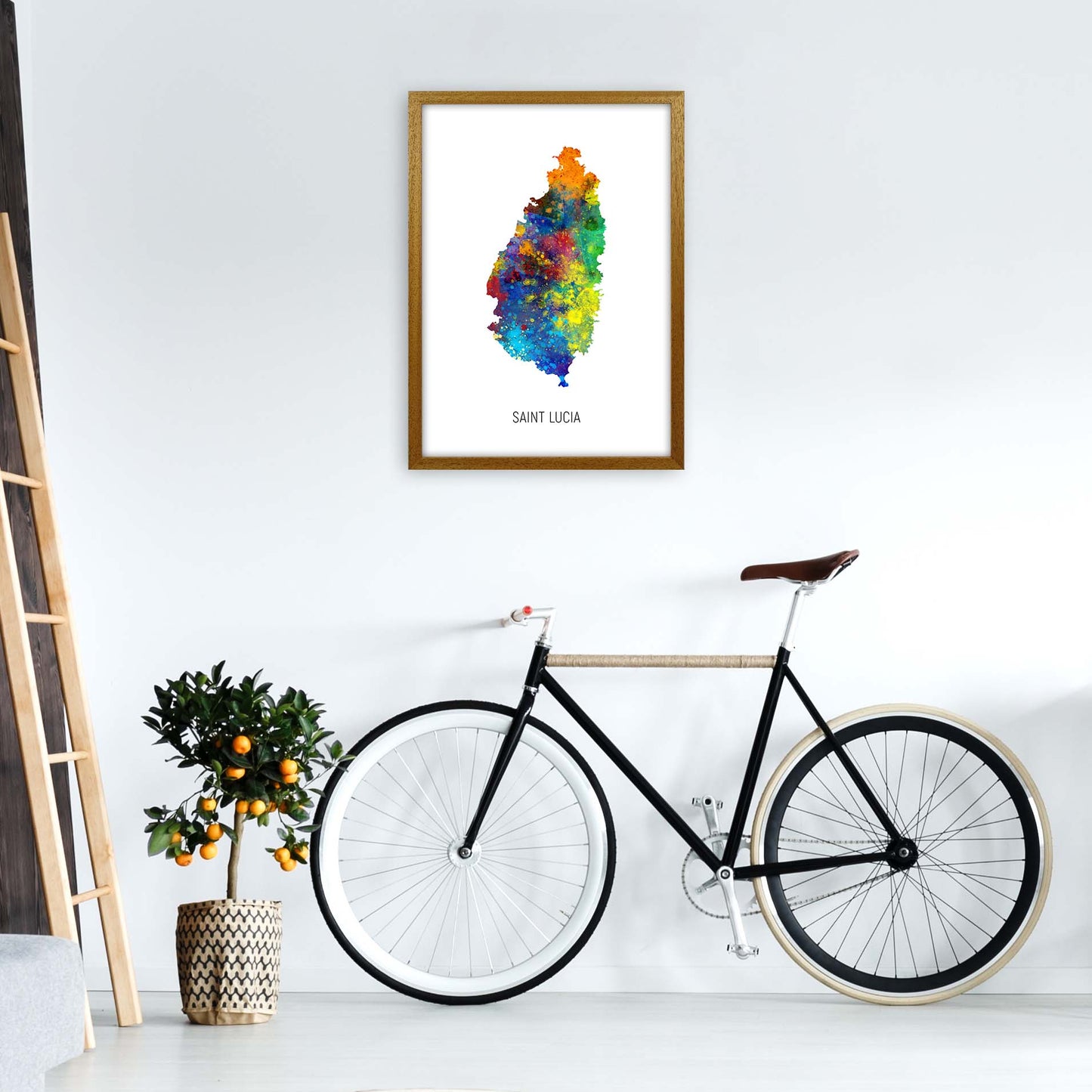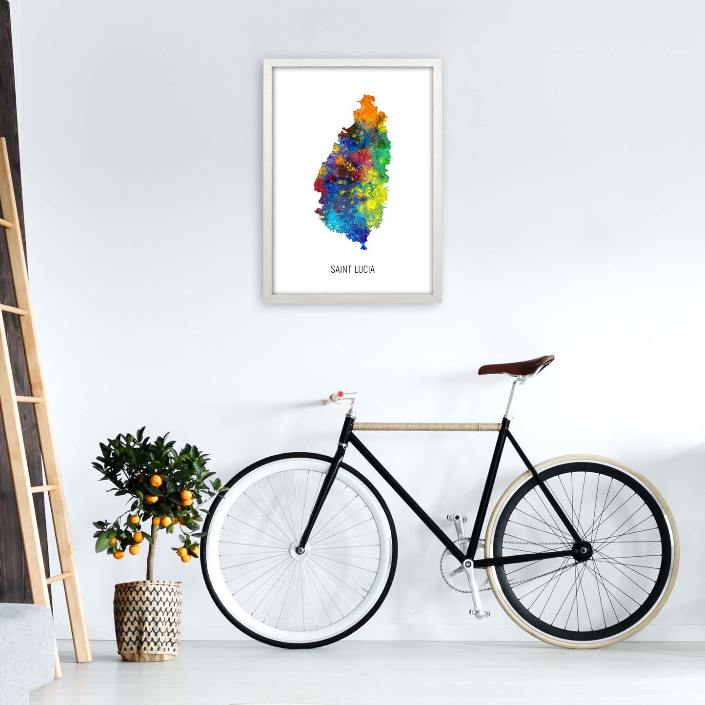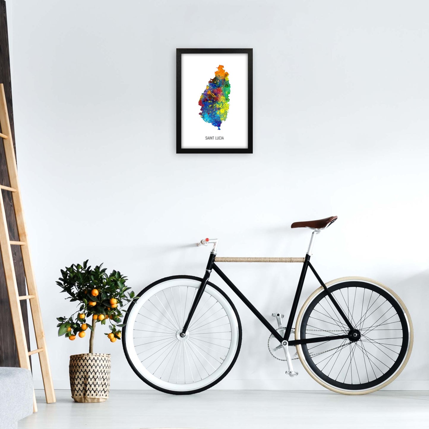 Saint Lucia Watercolour Map original Giclée fine art print. Available both as a framed print, print only or vibrant canvas art. Art print from an original by Michael Tompsett ©