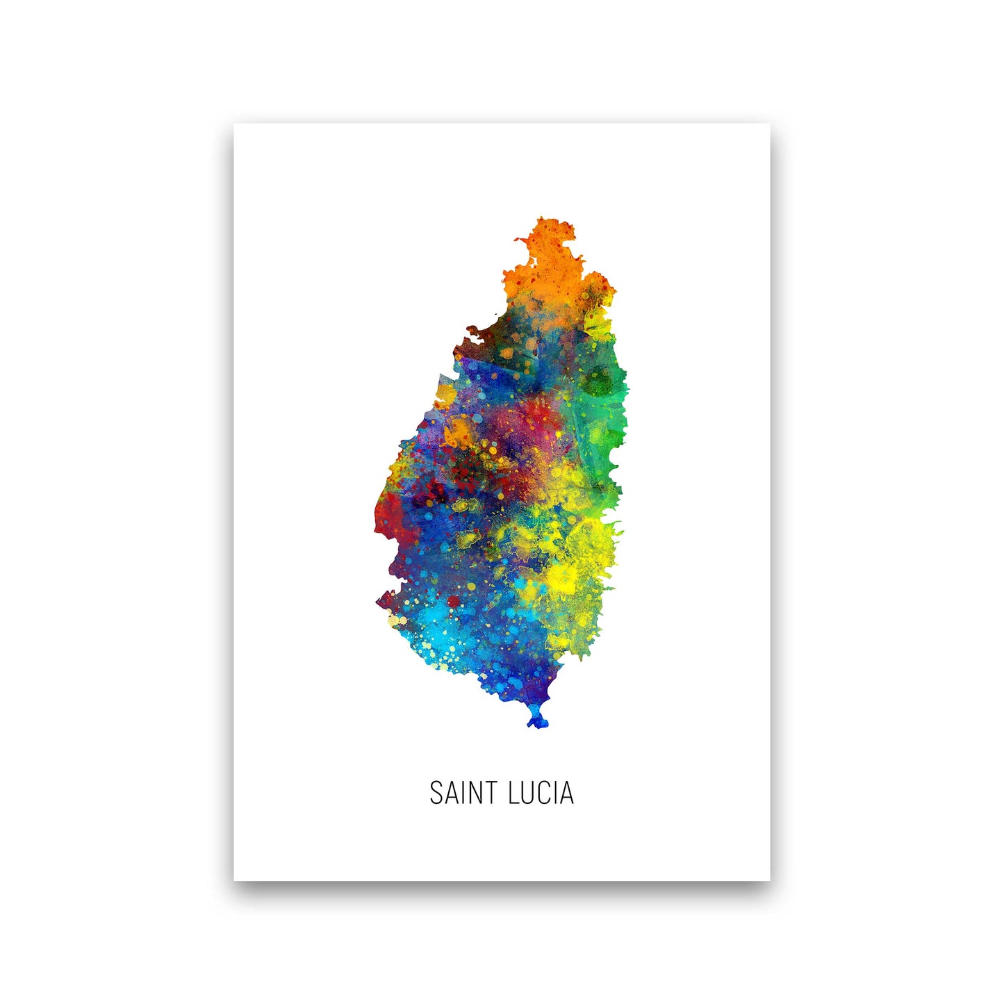 Saint Lucia Watercolour Map Art Print by Michael Tompsett