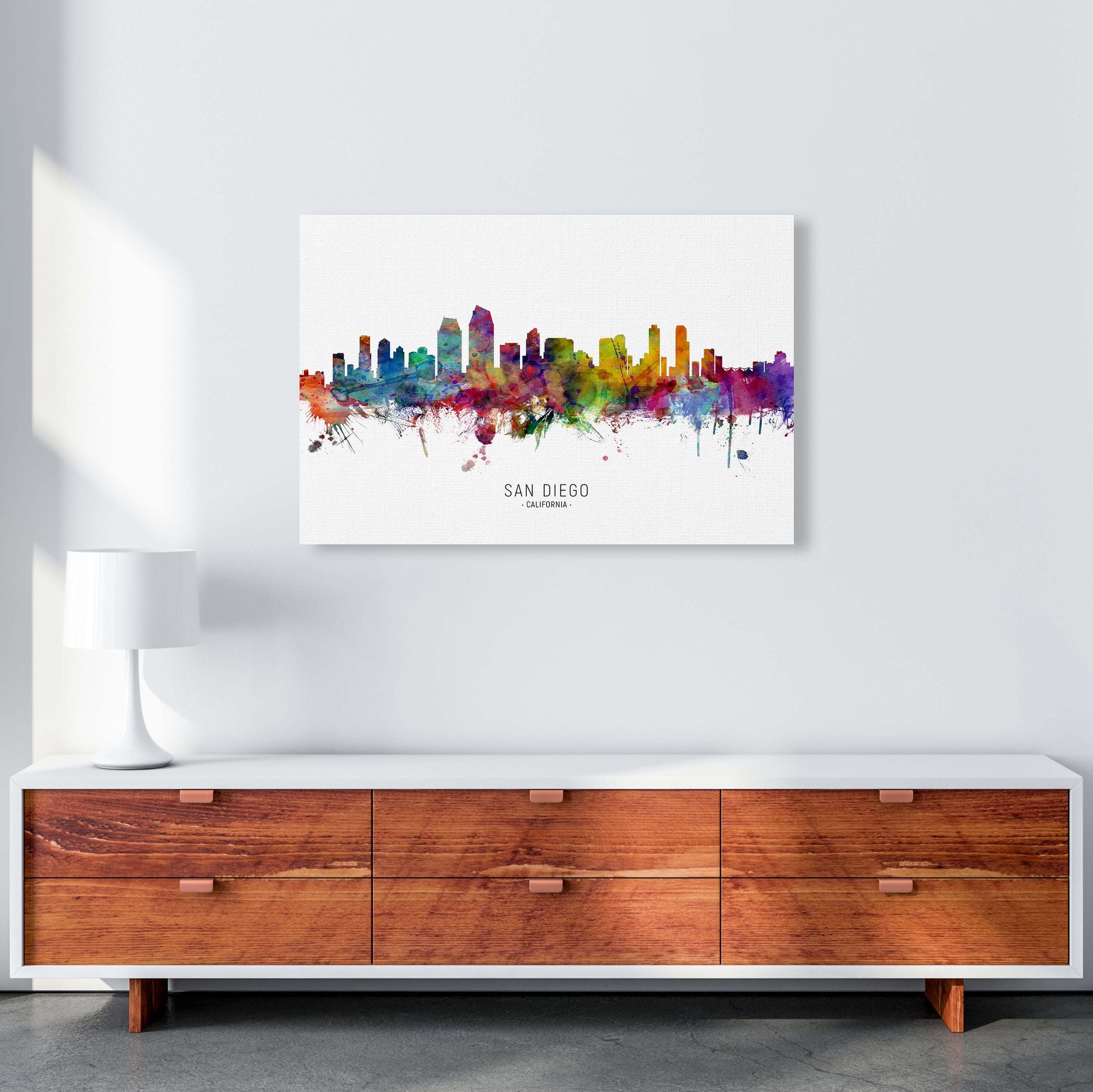 San Diego California Skyline original Giclée fine art print. Available both as a framed print, print only or vibrant canvas art. Art print from an original by Michael Tompsett ©