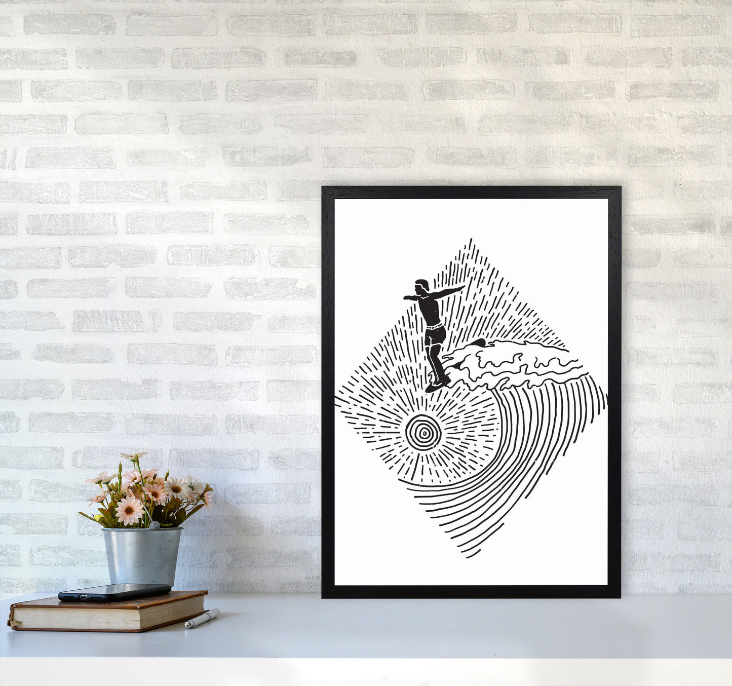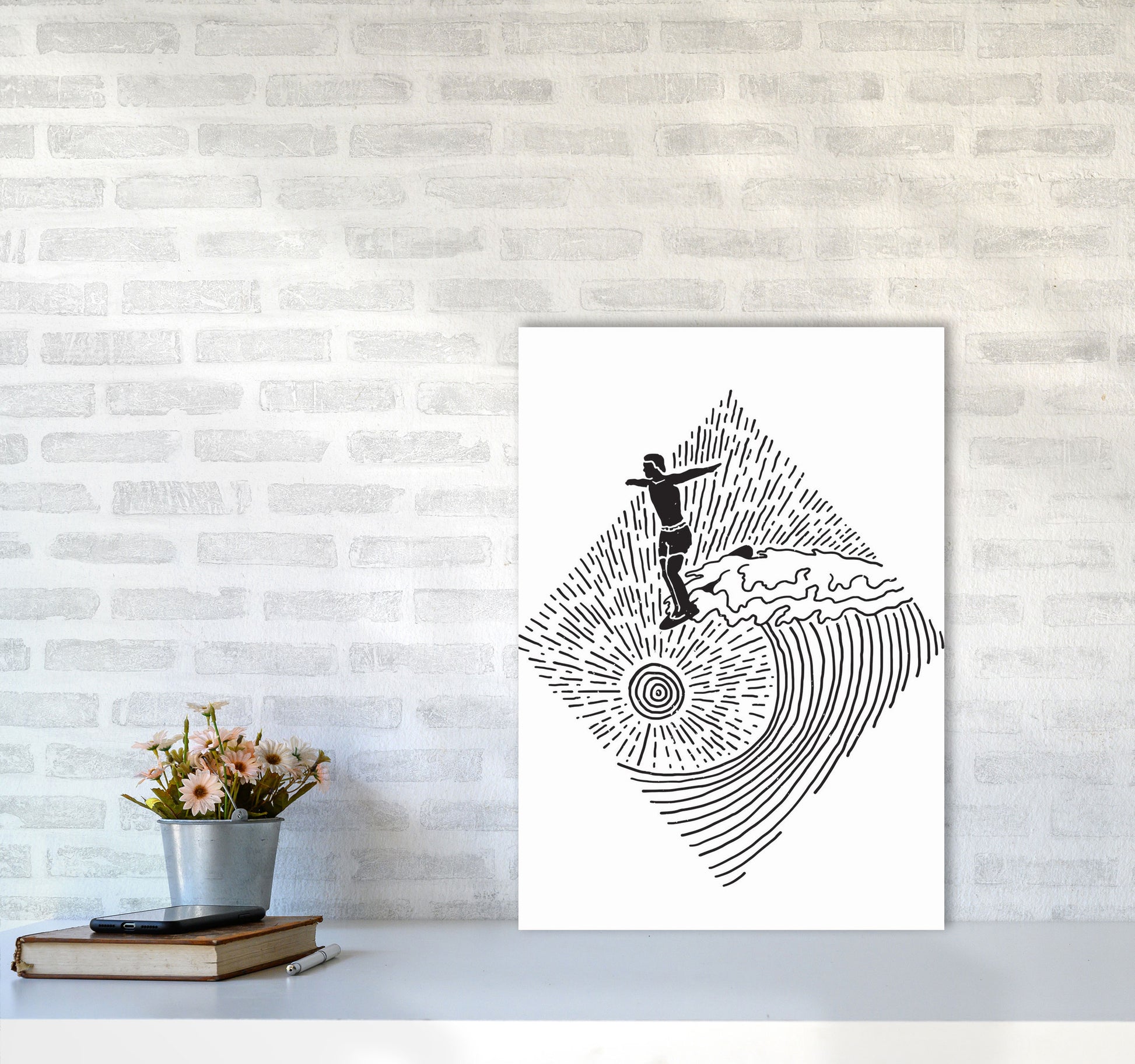 Surfer Line Drawing original Giclée fine art print. Available both as a framed print, print only or vibrant canvas art. Art print from an original by Jason Stanley ©