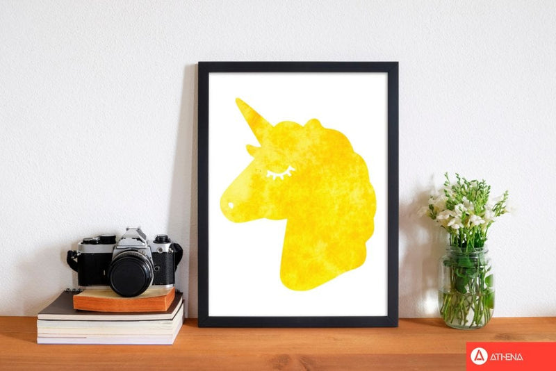 Unicorn Yellow Silhouette Watercolour original Giclée fine art print. Available both as a framed print, print only or vibrant canvas art. Art print from an original by Pixy Paper ©